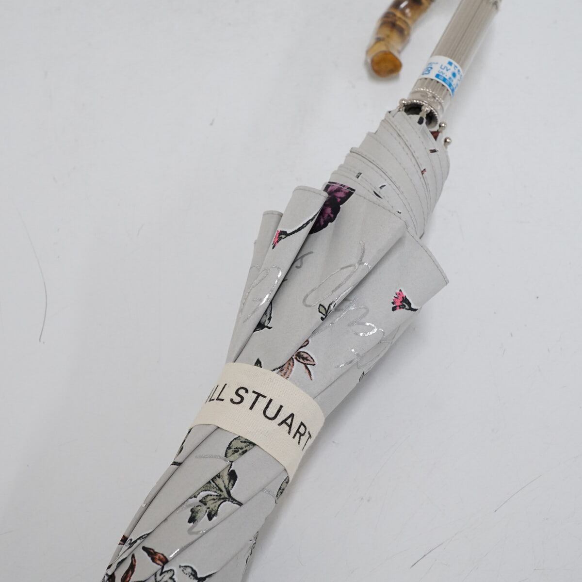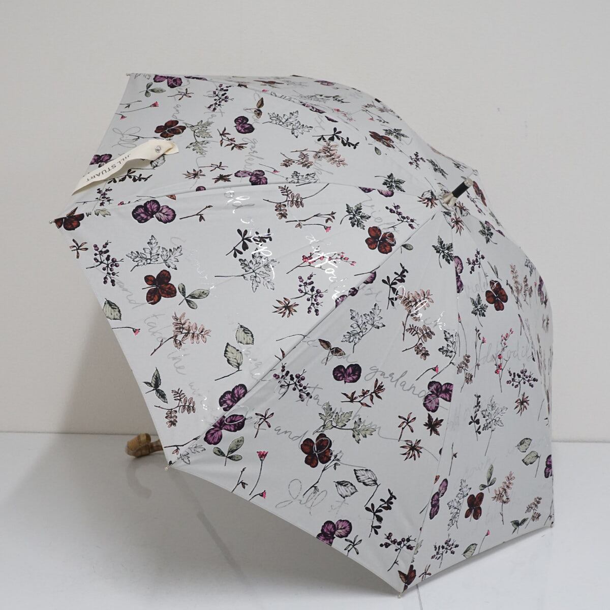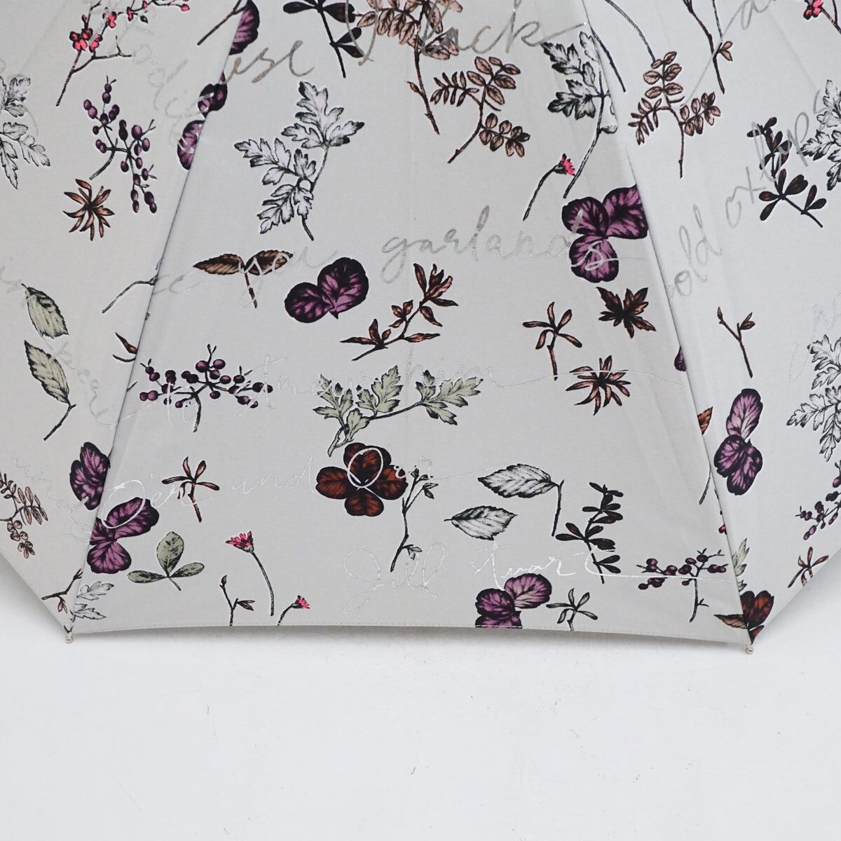 晴雨兼用日傘 JILL STUART ジルスチュアート USED美品 ボタニカル柄 箔プリント 遮光 UV グラス骨 47cm S2812