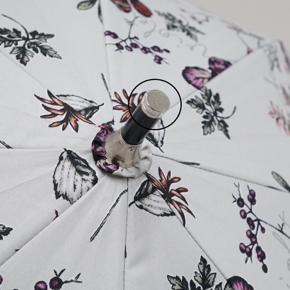 淡い色合いの生地にボタニカル柄をデザインした晴雨兼用パラソルです。