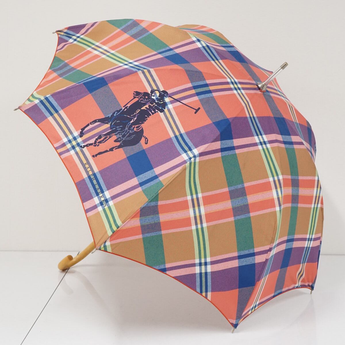 傘 Ralph Lauren ラルフローレン USED美品 チェック ポロポニー 1枚張り 高級 55cm S2845