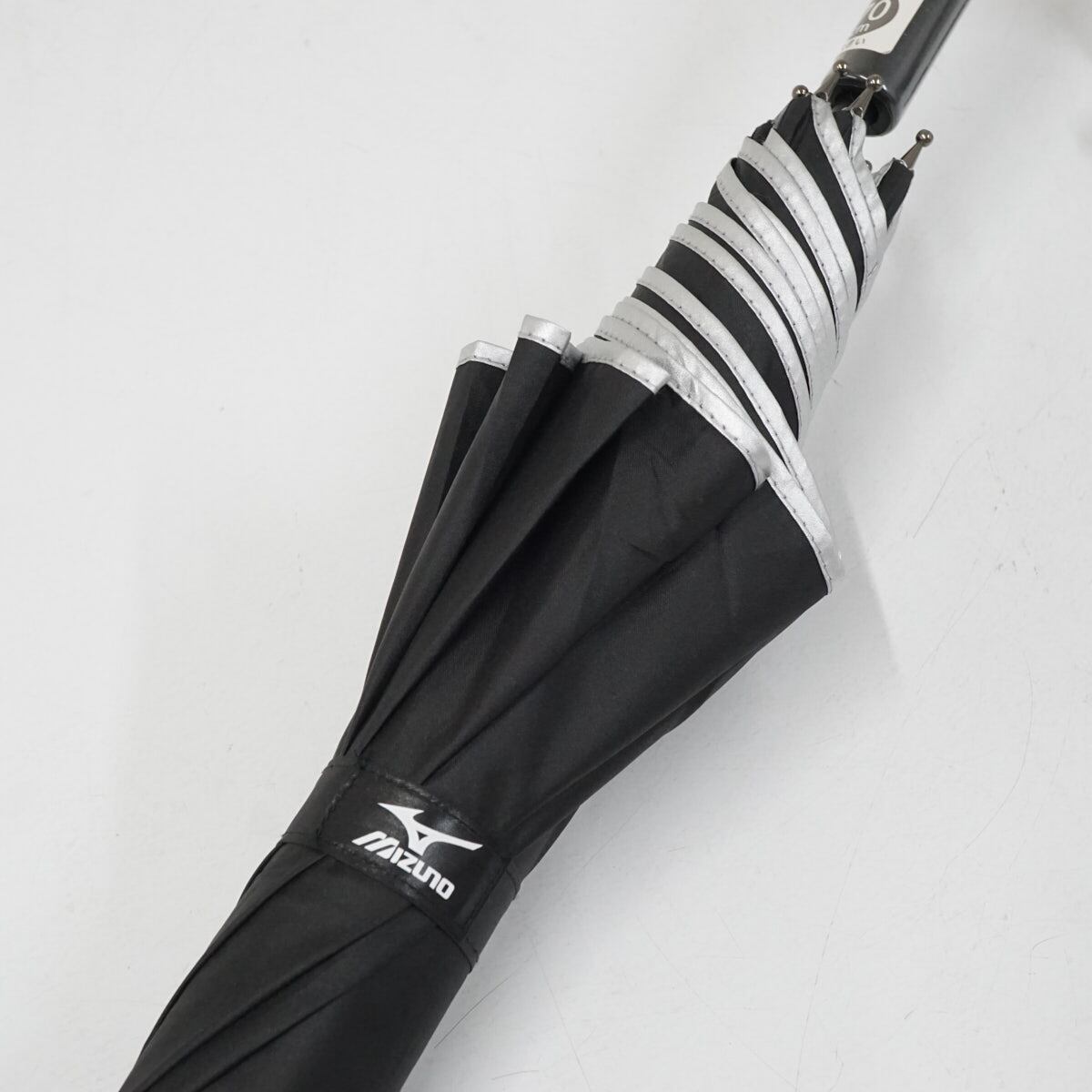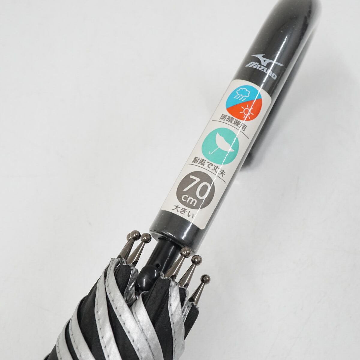 晴雨兼用傘 MIZUNO ミズノ USED超美品 メンズ 耐風 ワンポイント ブラック ジャンプ シルバーコーティング 超大判 70cm A2847