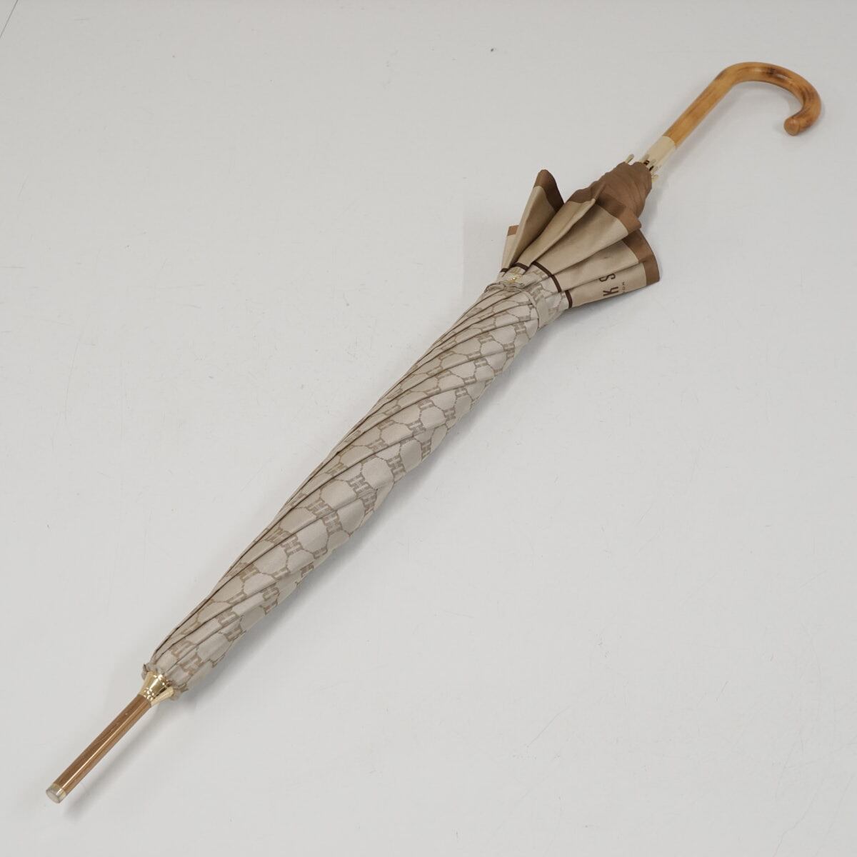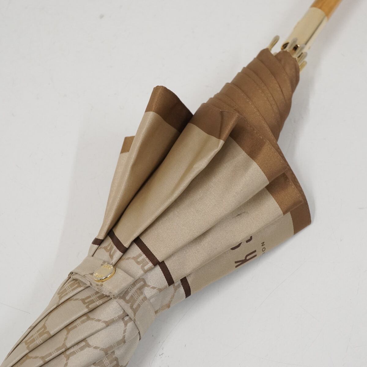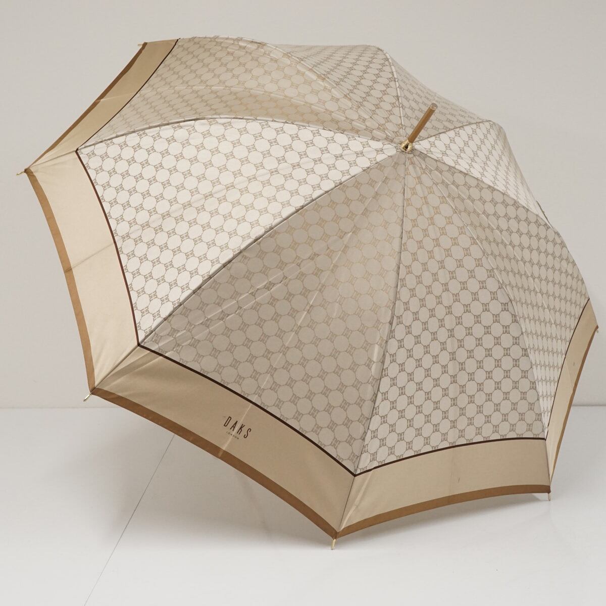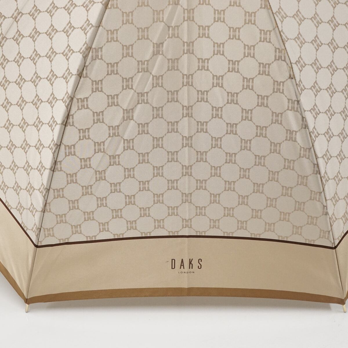 傘 DAKS ダックス 高級 USED品 ジャガード レッド ロゴ モノグラム 60cm グラス骨 A3368