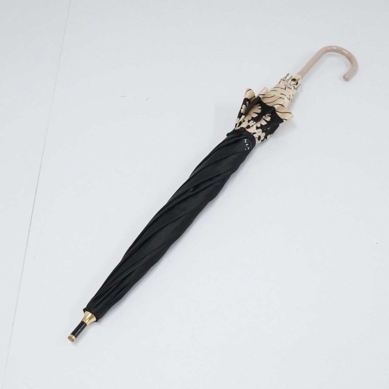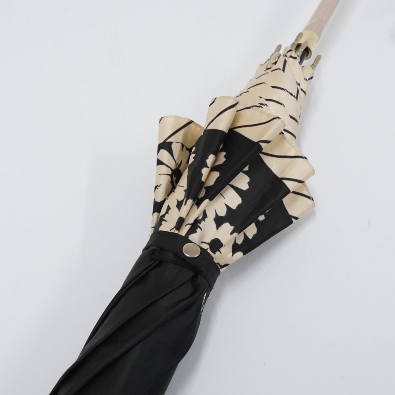 ブラック×ライトベージュでフラワーシルエットをデザインした「ランバンオンブルー」のアンブレラです。