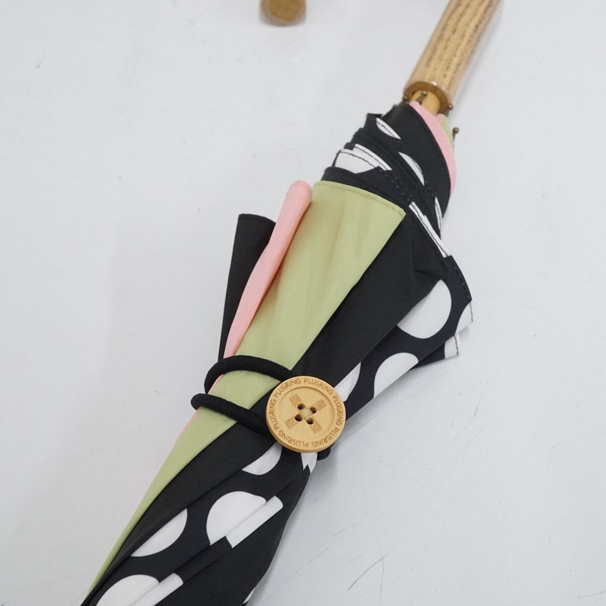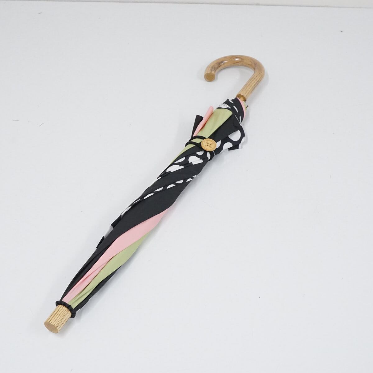 傘 +RING coco プラスリング ココ USED美品 パッチワーク カラフル 派手 おしゃれ ブラックドット 52cm A2826