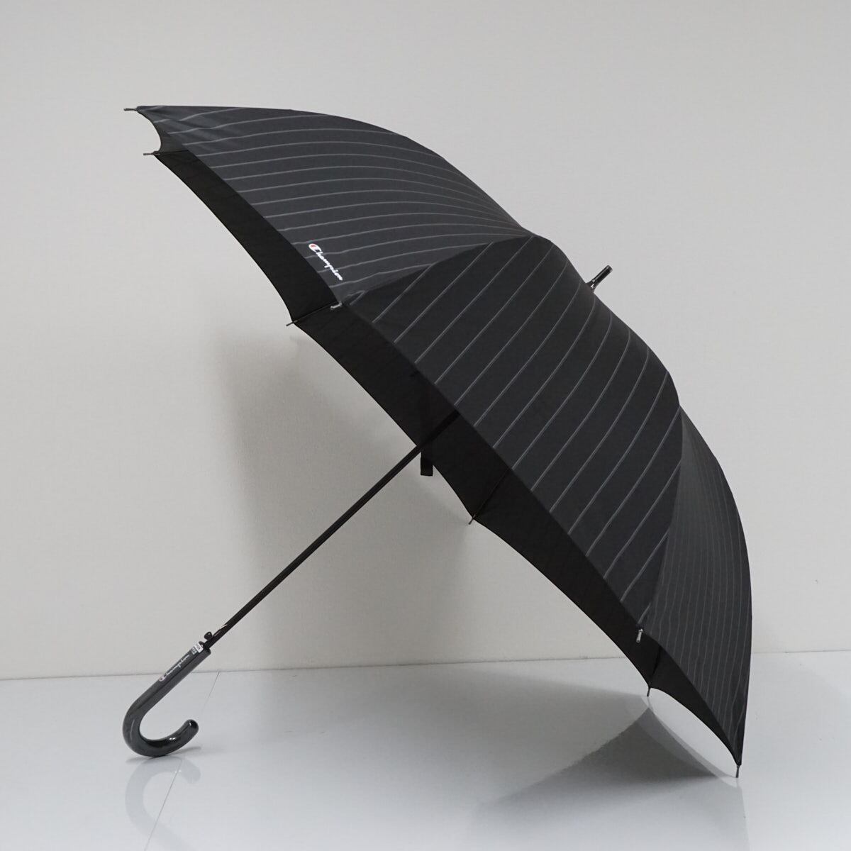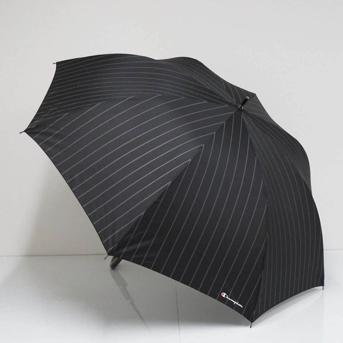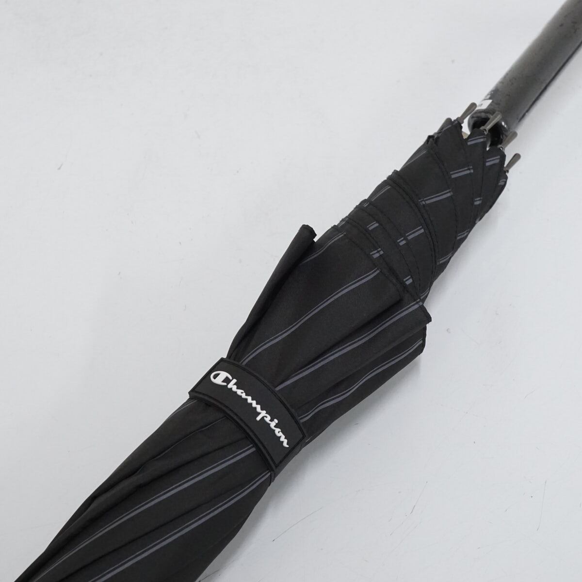 耐風傘 Champion チャンピオン USED超美品 ストライプ ロゴ ブラック ジャンプ メンズ 紳士 大判 65cm A2828