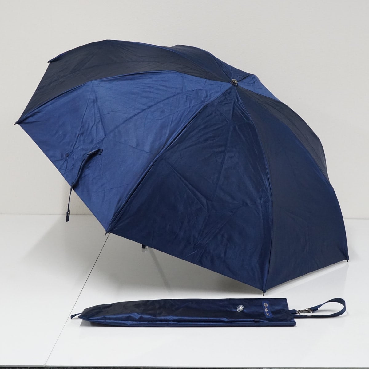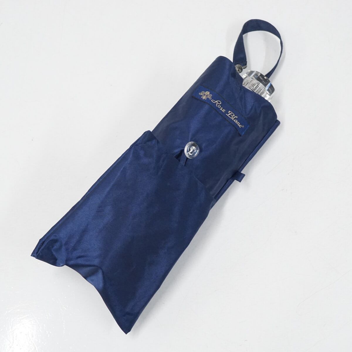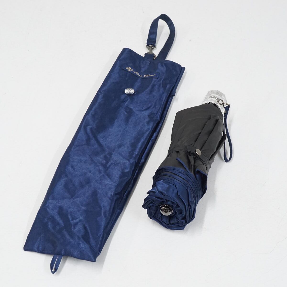 完全遮光折日傘 芦屋ロサブラン USED美品 3段折 プレーン ネイビー 光沢 UV 遮熱 折りたたみ 55cm FS8971