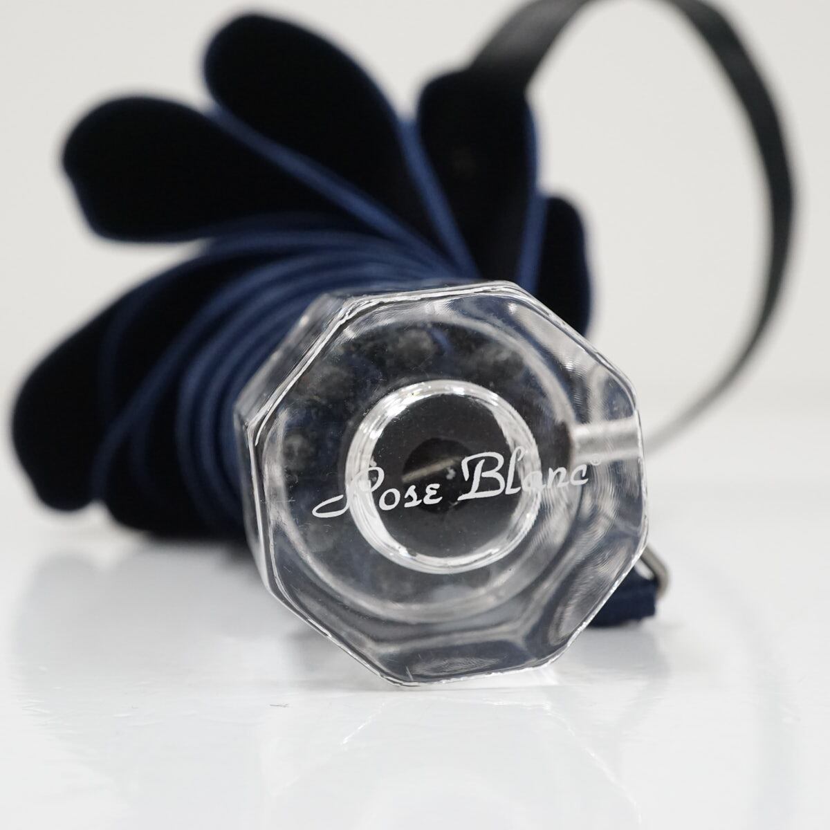 光沢のあるネイビーの生地が、普段使いしやすいデザインです。