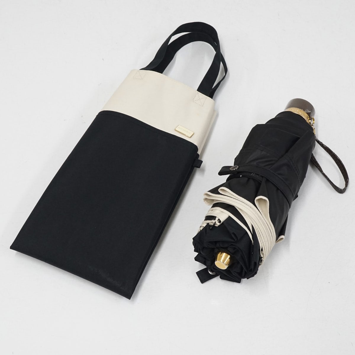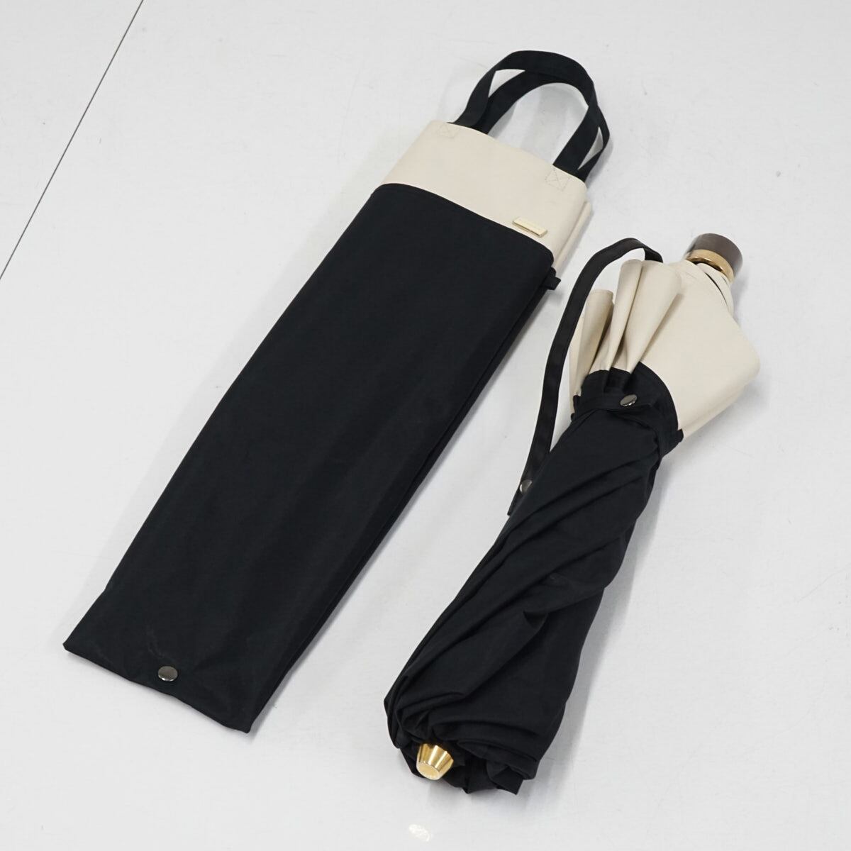 完全遮光折りたたみ日傘 BICHERIE. ビシェリ 晴雨兼用日傘 USED美品 ブラック ベージュ バイカラー UV 遮光 遮熱 50cm FS8970