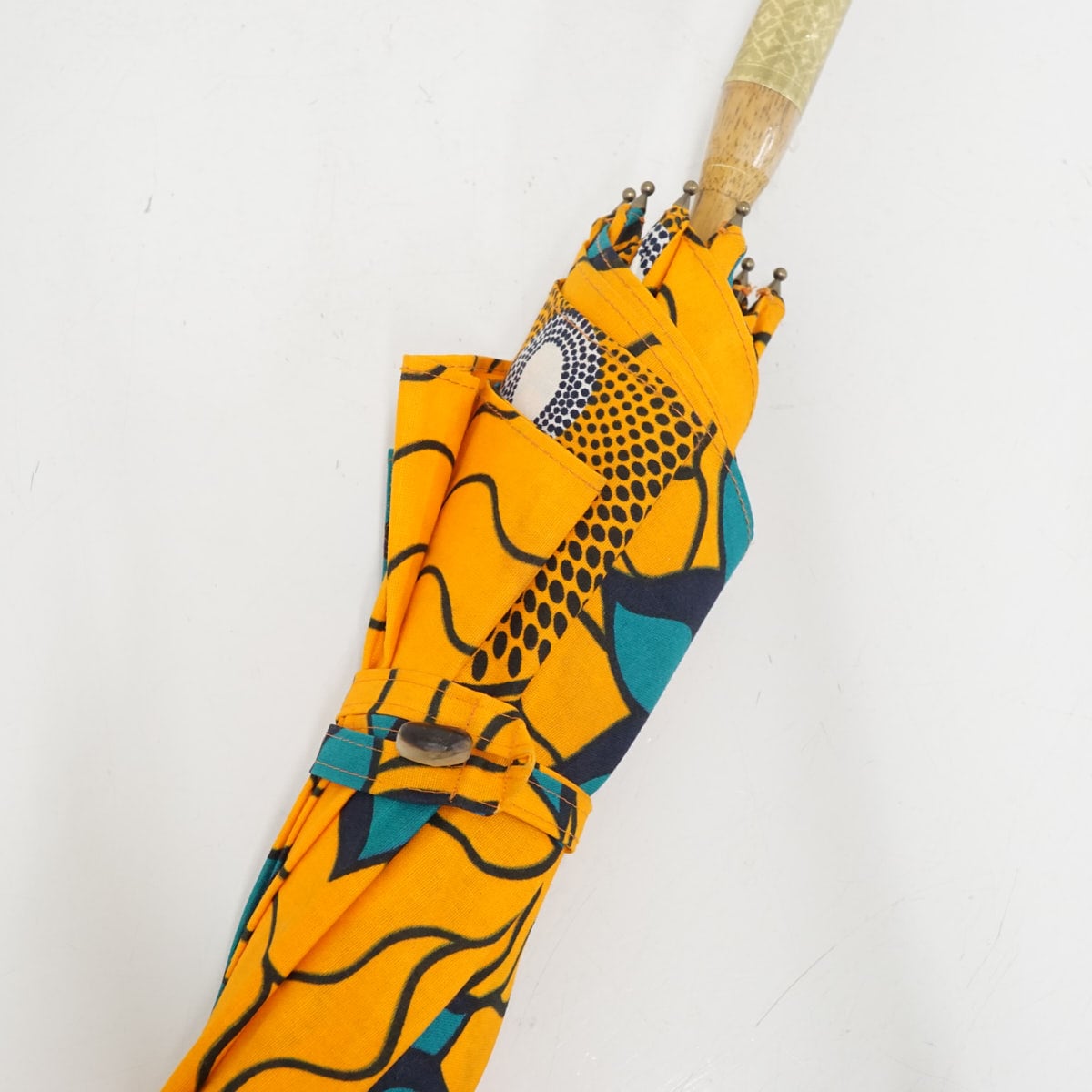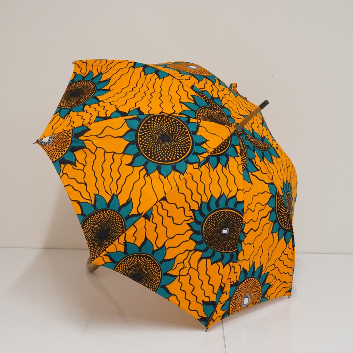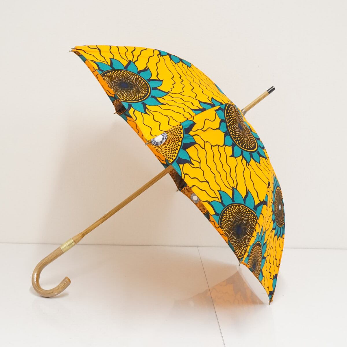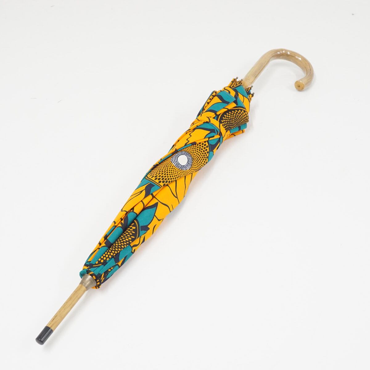 アフリカ伝統の民族布であるパーニュ生地を使った日傘です。