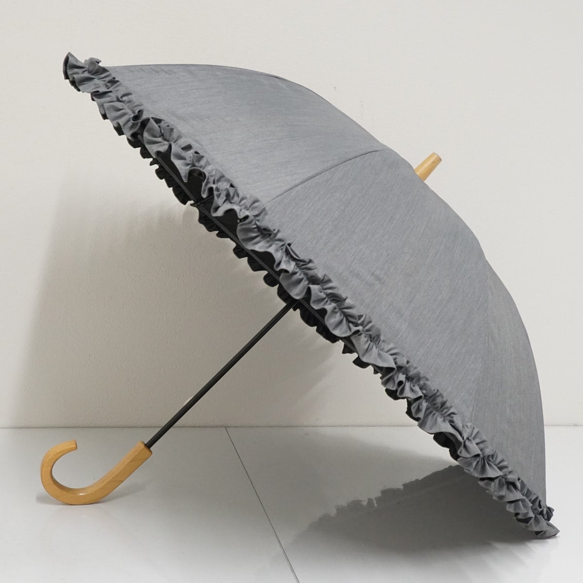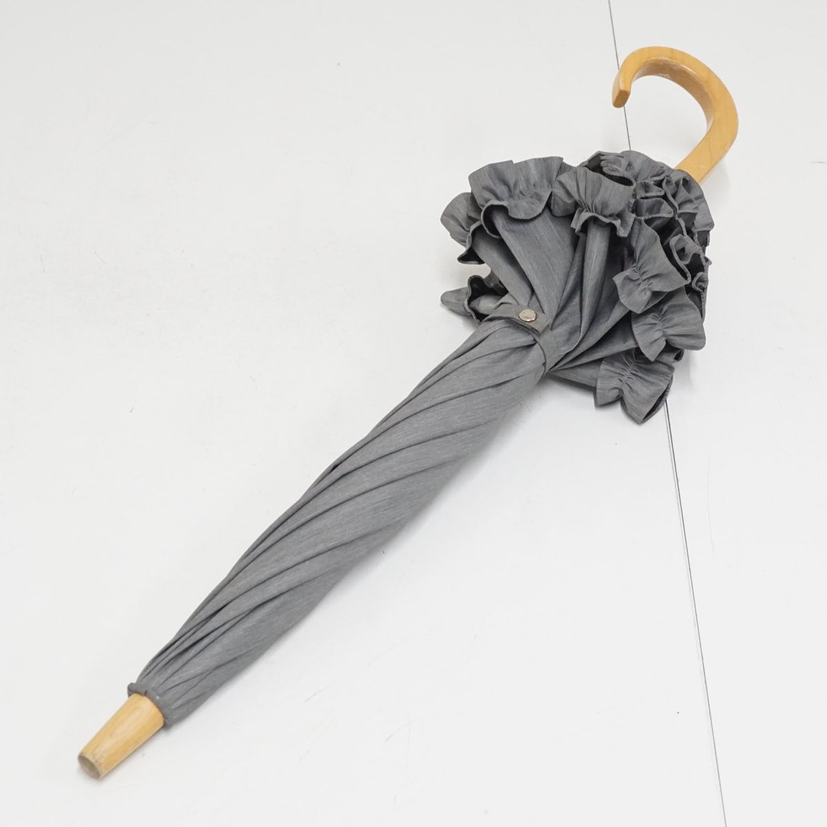 サンバリア100 完全遮光日傘 USED美品 フロスト グレー フリル Sサイズ UV 遮熱 47cm S2850