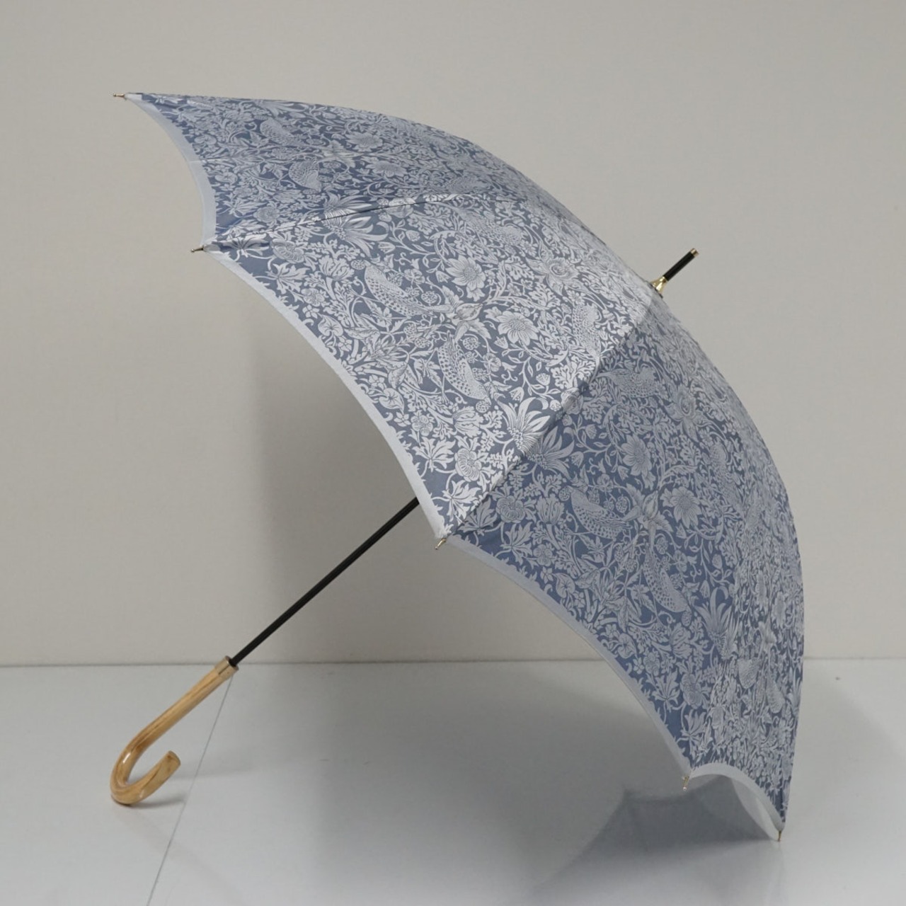 ウィリアムモリスの代表作「いちご泥棒」を傘生地に落とし込んだアーティスティックなアンブレラです。