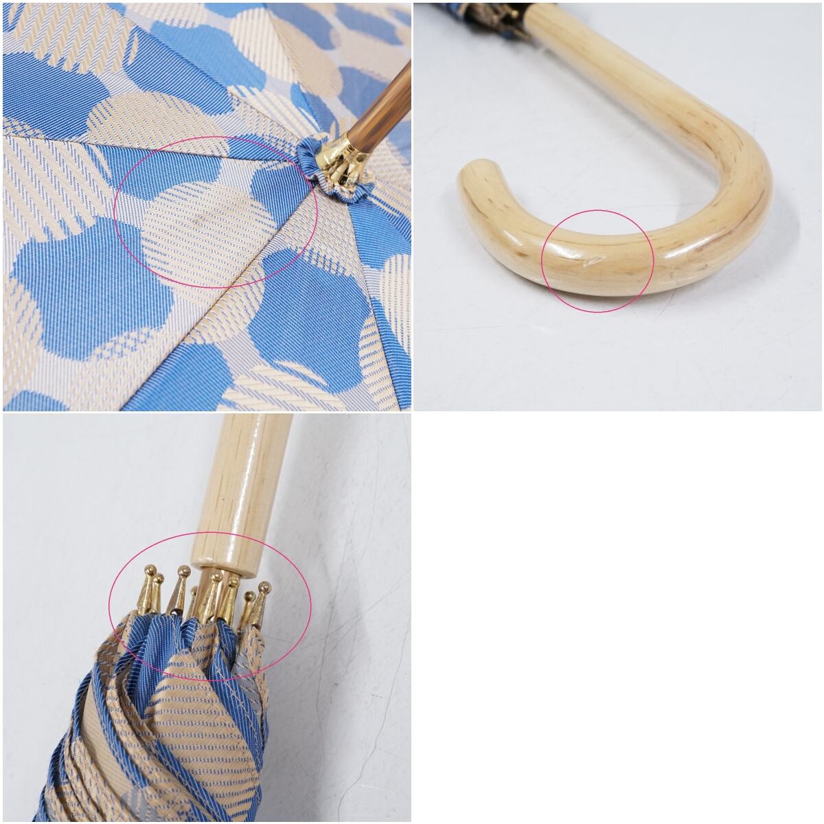傘 槇田商店 USED美品 ノルディック ドットコラージュ ブルー 高級 槙田商店 60cm S2874