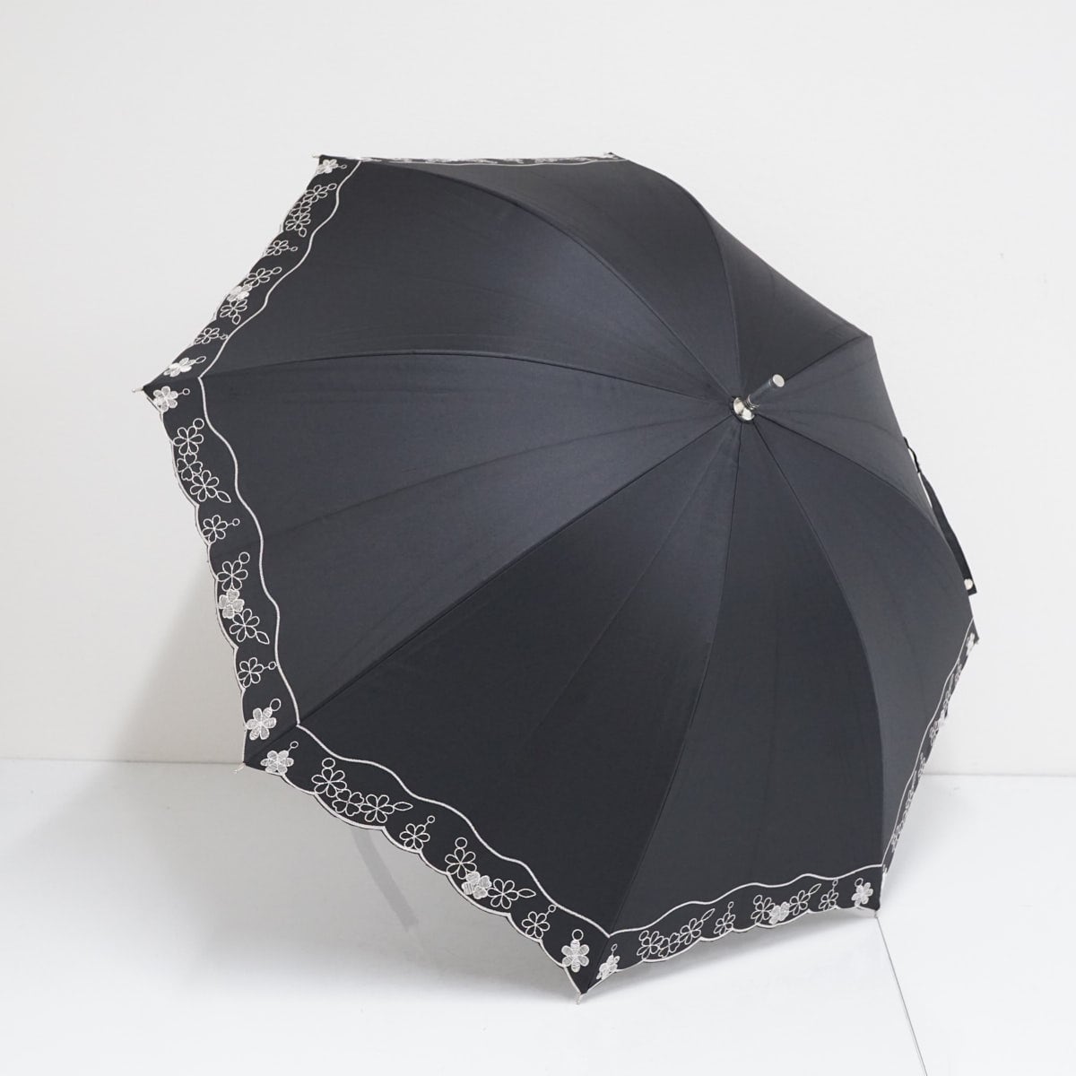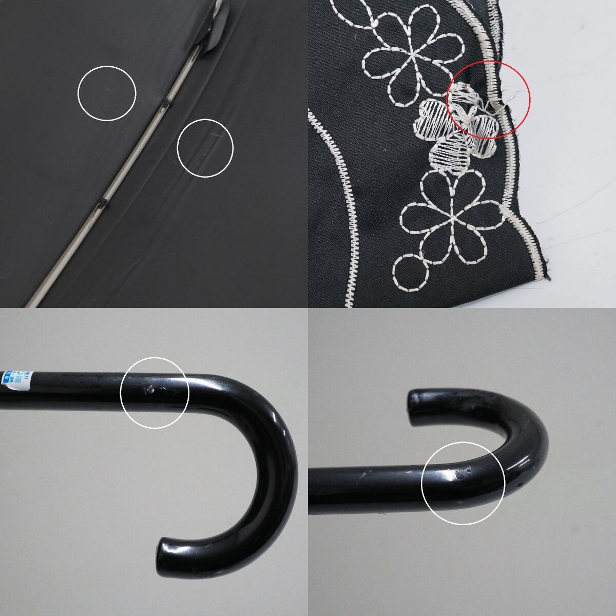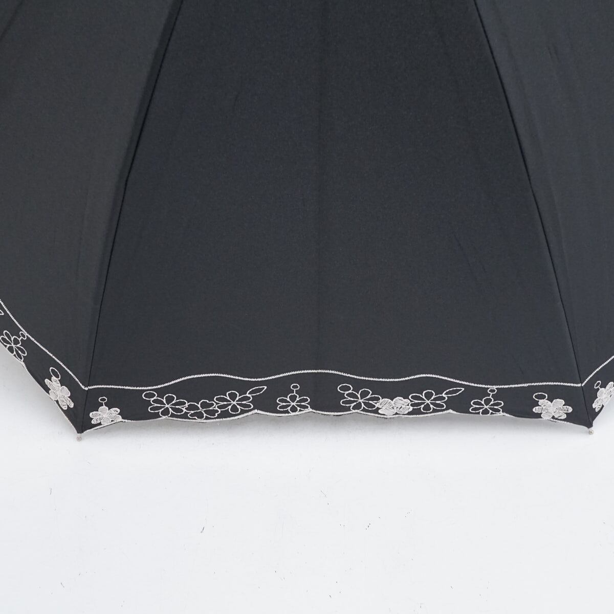 晴雨兼用日傘 AURORA オーロラ(株) USED美品 ブラック 刺繍 フラワー 遮光 遮熱 UV 47cm A2868