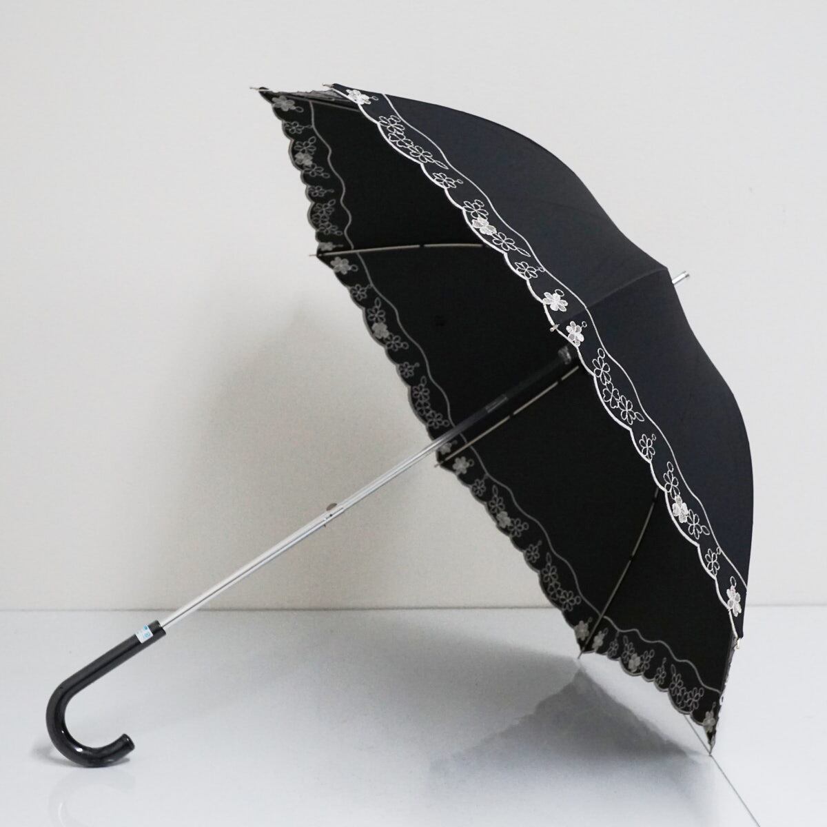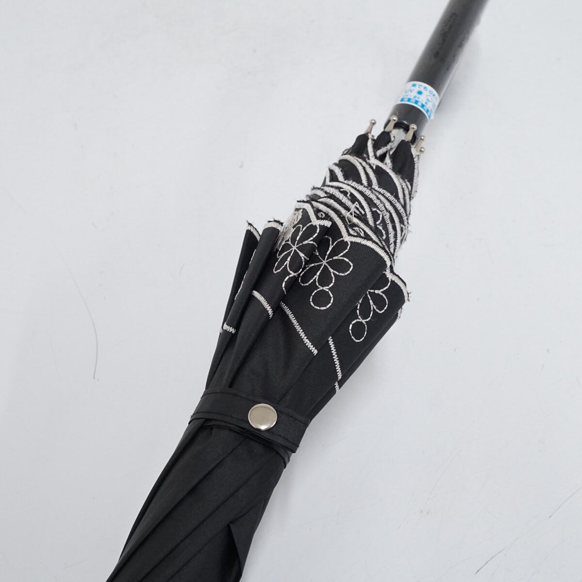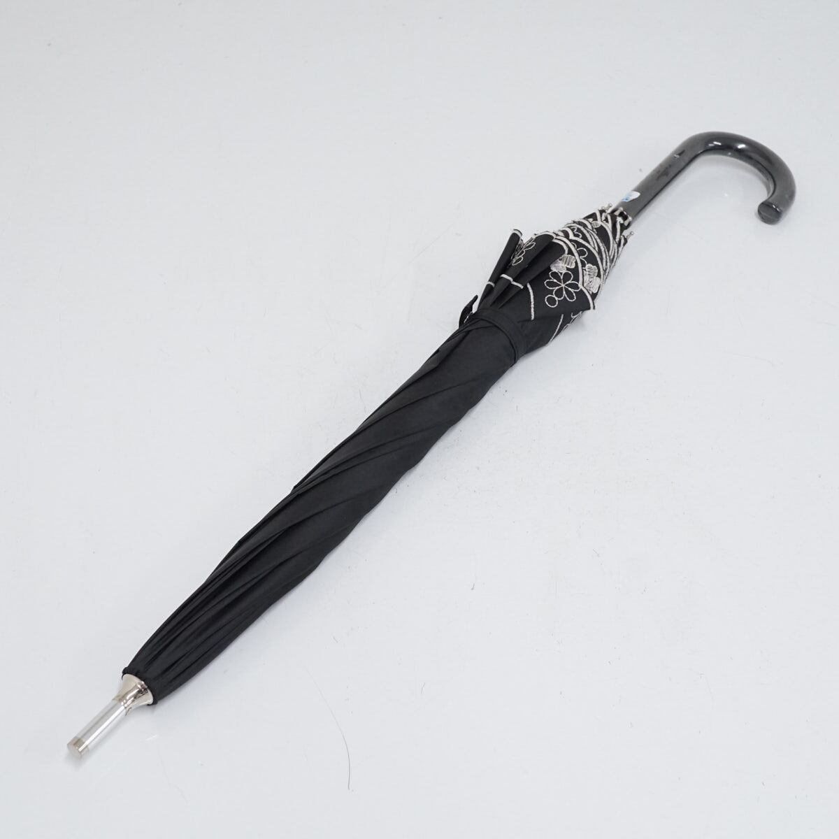 晴雨兼用日傘 AURORA オーロラ(株) USED美品 ブラック 刺繍 フラワー 遮光 遮熱 UV 47cm A2868