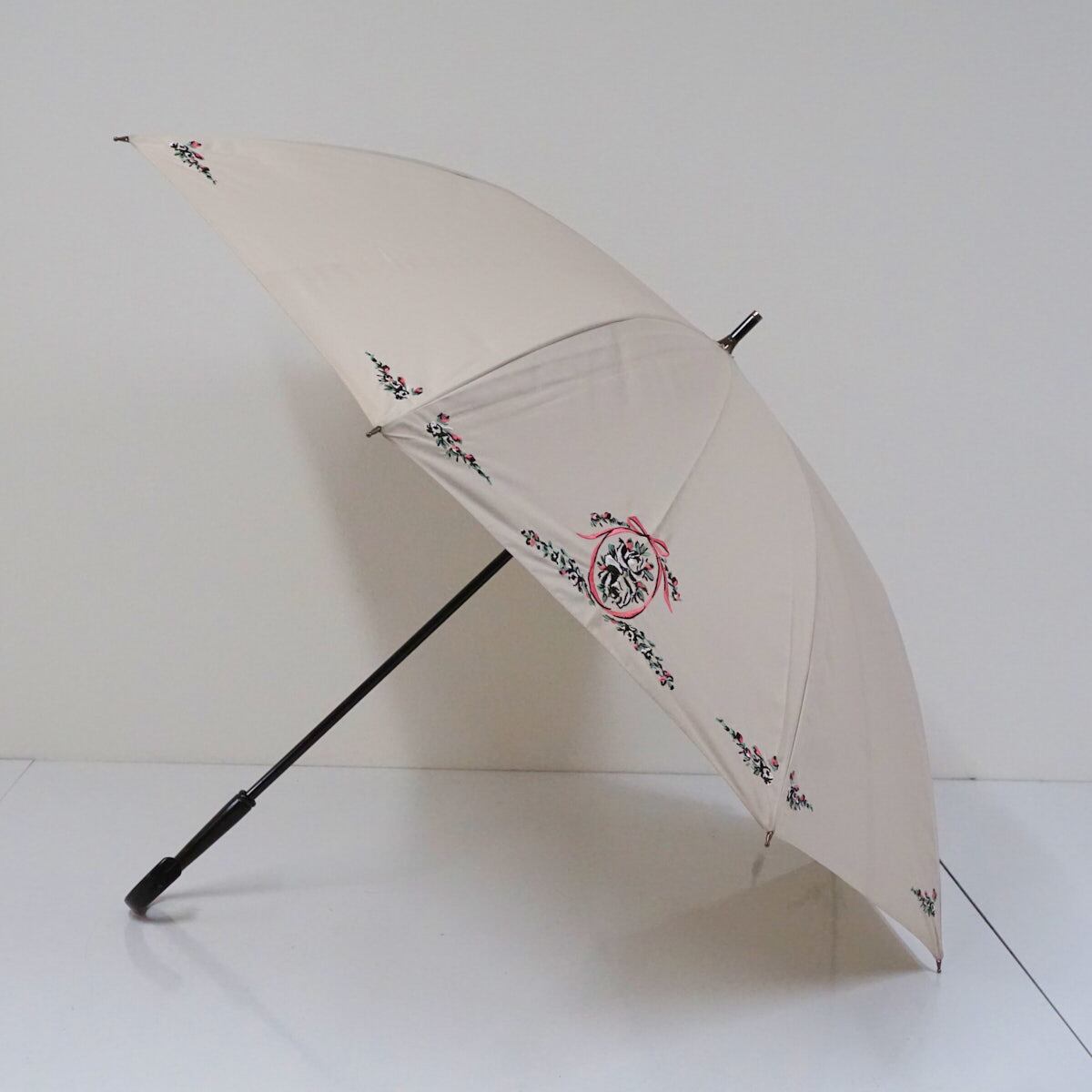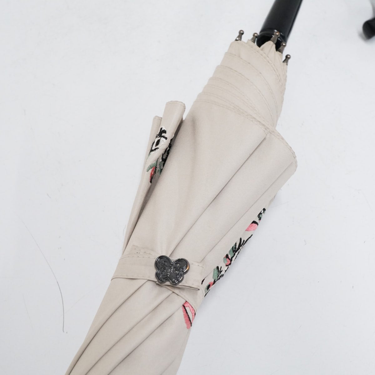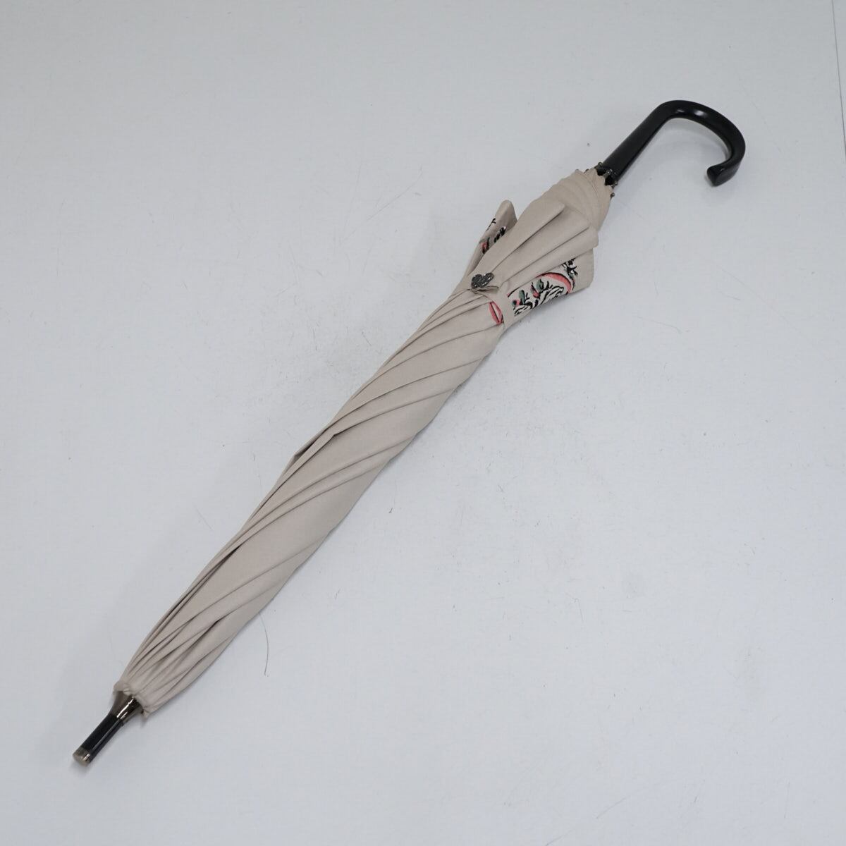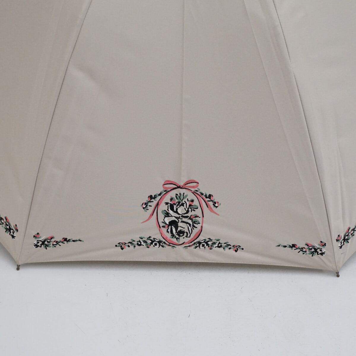 晴雨兼用日傘 ANNA SUI アナスイ USED品 フラワー 刺繍 遮光 撥水 UV グラス骨 ベージュ 55cm S2880