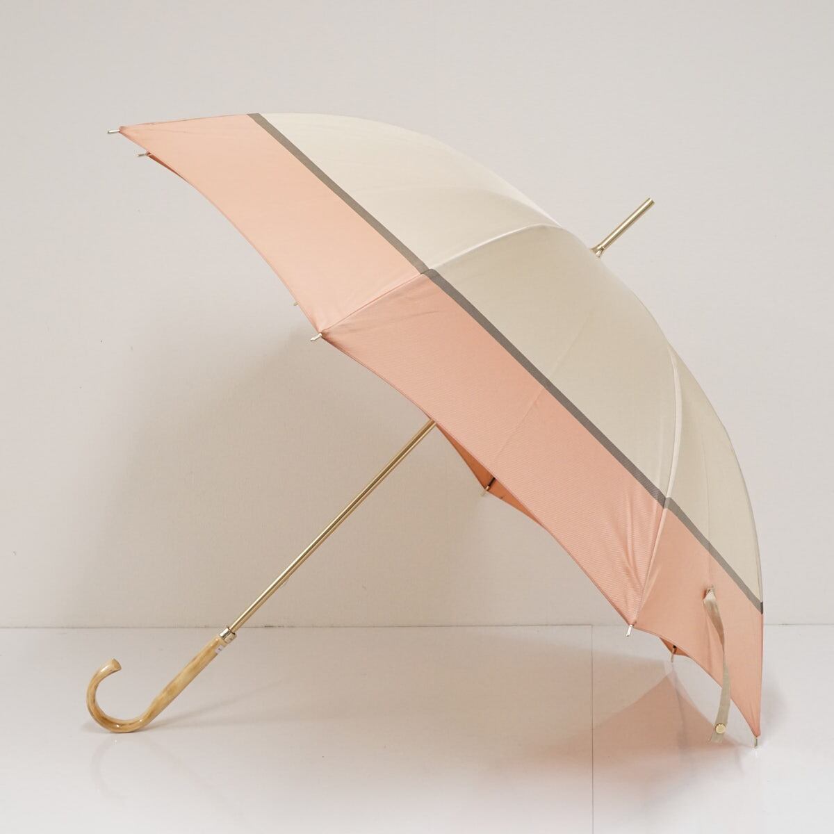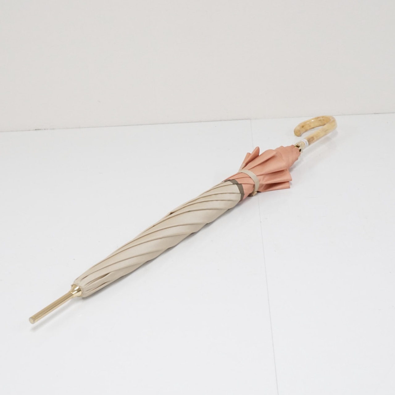 傘 Aquascutum アクアスキュータム USED美品 ピンク×ベージュ バイカラー ツートン 日本製 グラス骨 60cm A2886