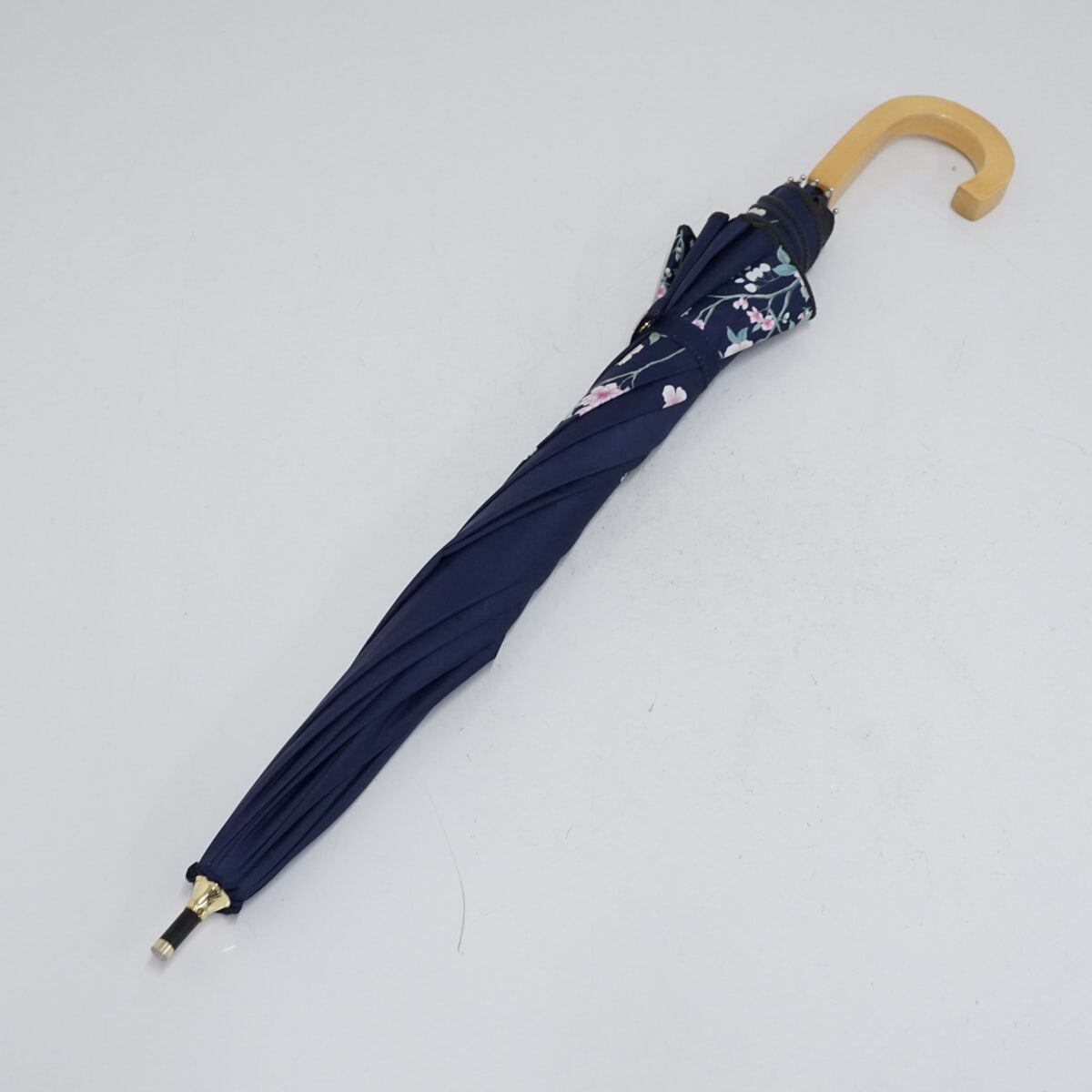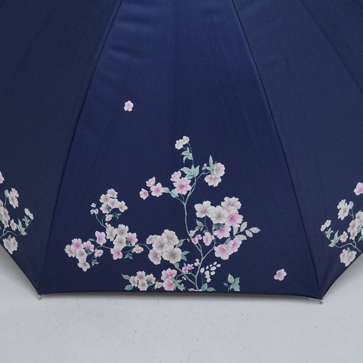 晴雨兼用日傘 Sinco シンコウ USED品 花 フラワー 桜 和柄 遮光 UV ネイビー 50cm A2882