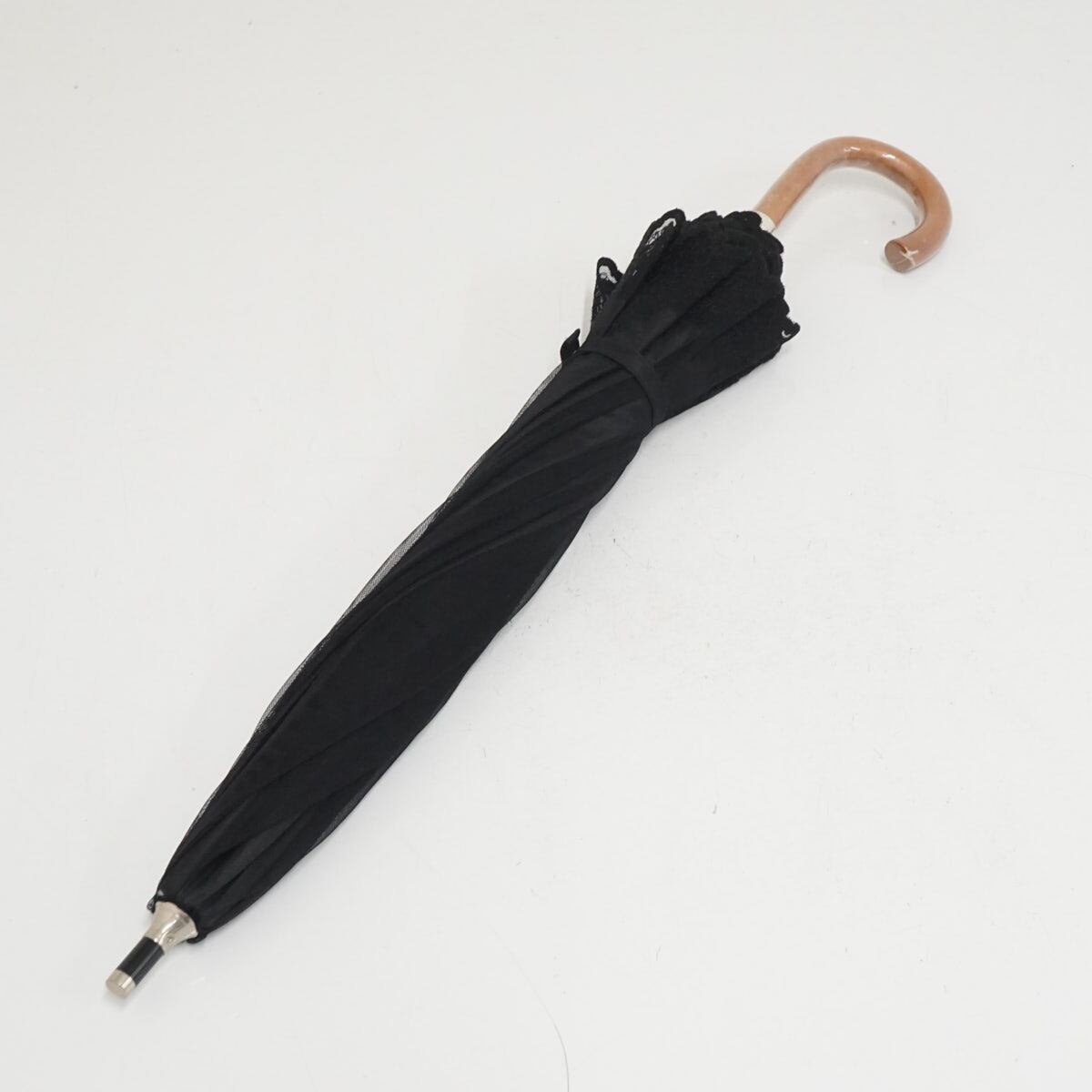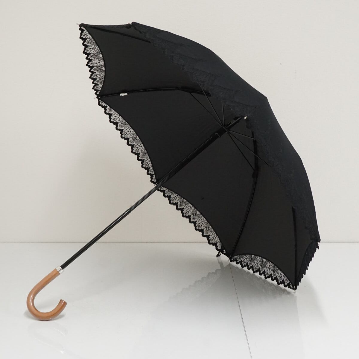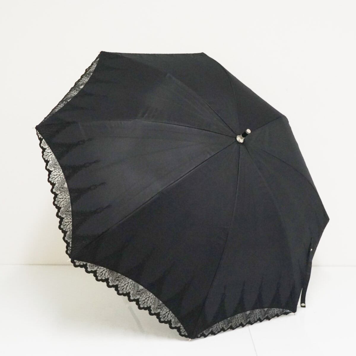 日傘 AURORA オーロラ(株) USED美品 ブラック 刺繍 レース 晴雨兼用 遮光 遮熱 UV 47cm S2902