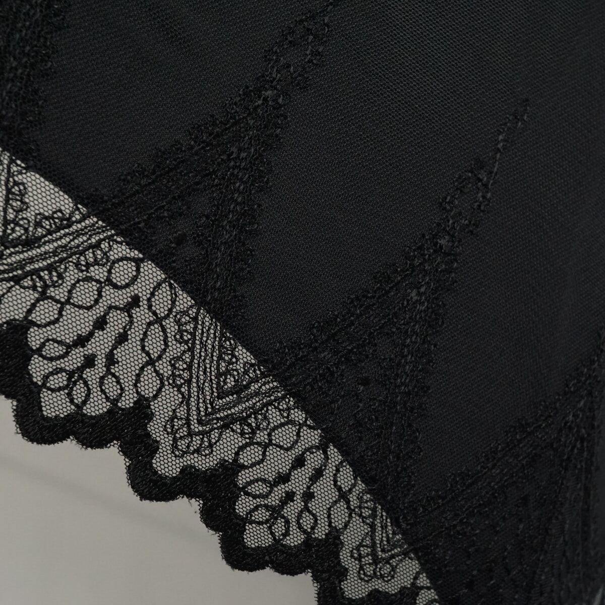 ブラック地の総レースと刺繍仕上げのおしゃれなデザインです。