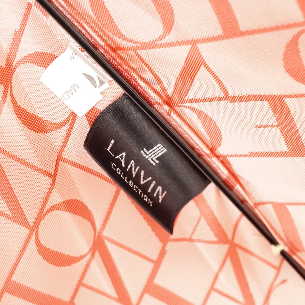 耐風傘 LANVIN COLLECTION ランバンコレクション USED美品 ロゴジャカード 木製手元 グラスファイバーフレーム 60cm A3330