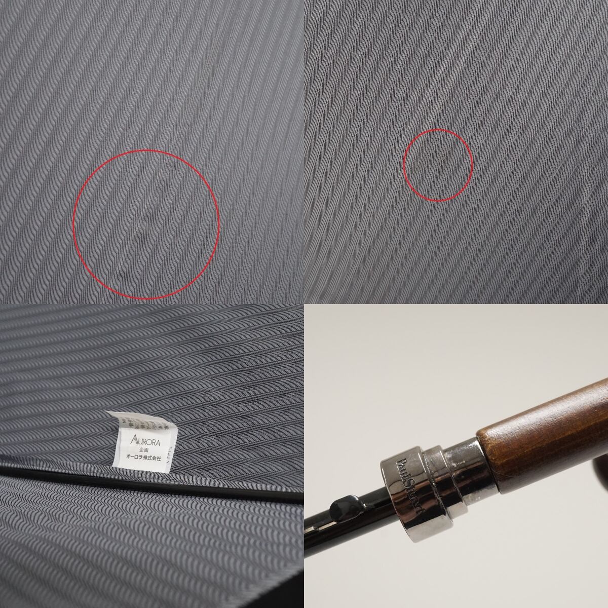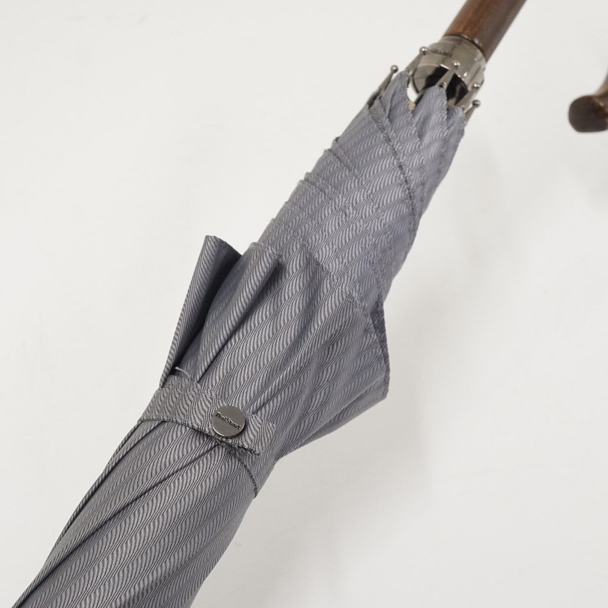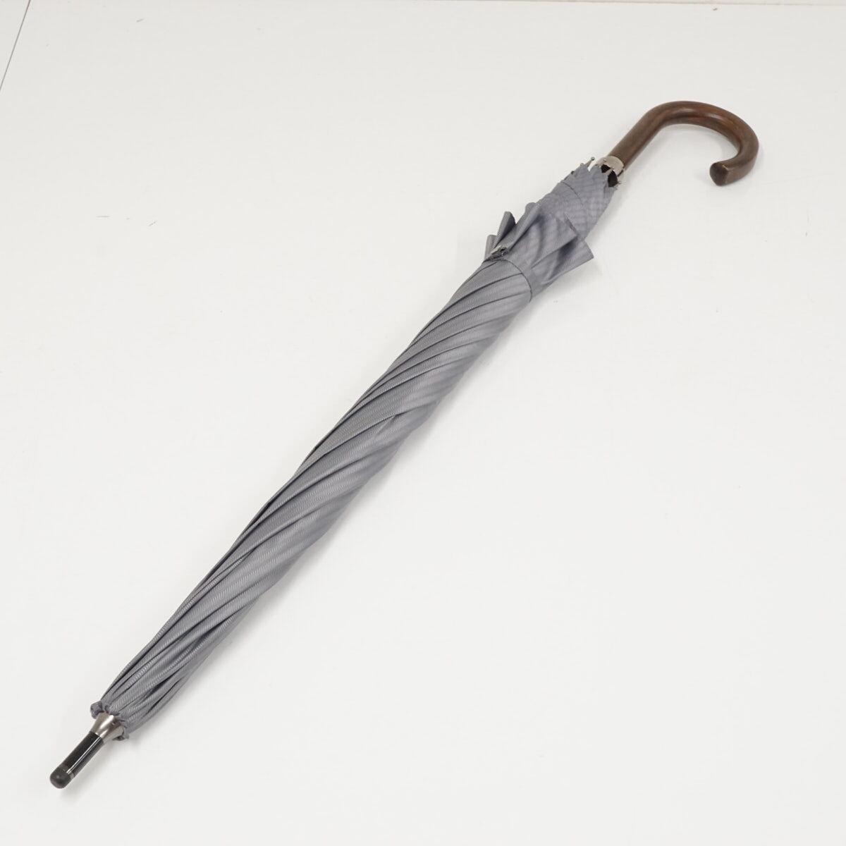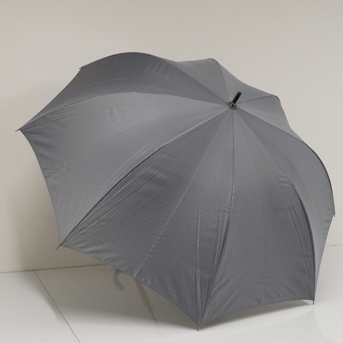 傘 Paul Stuart ポールスチュアート USED品 紳士傘 ストライプ 高級 木製手元 大判 ジャンプ グレー 70cm S2920