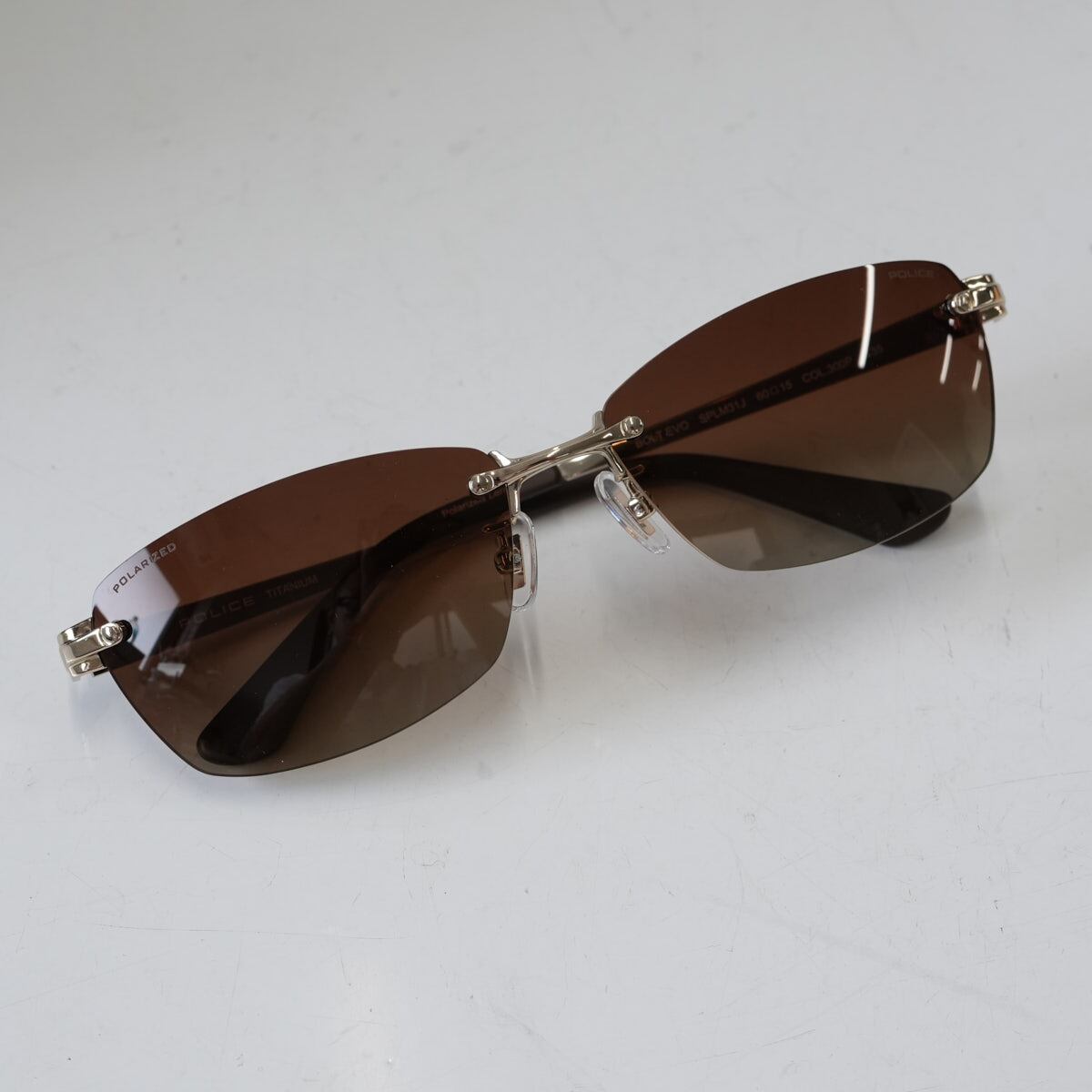 POLICE BOLT EVO 偏光サングラス SPLM31J 300P USED超美品 ツーポイント ポラライズド ブラウングラデーション 中古 X7306