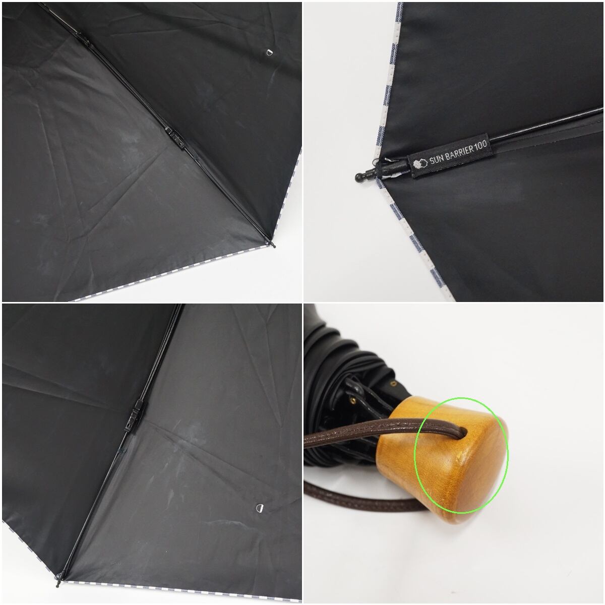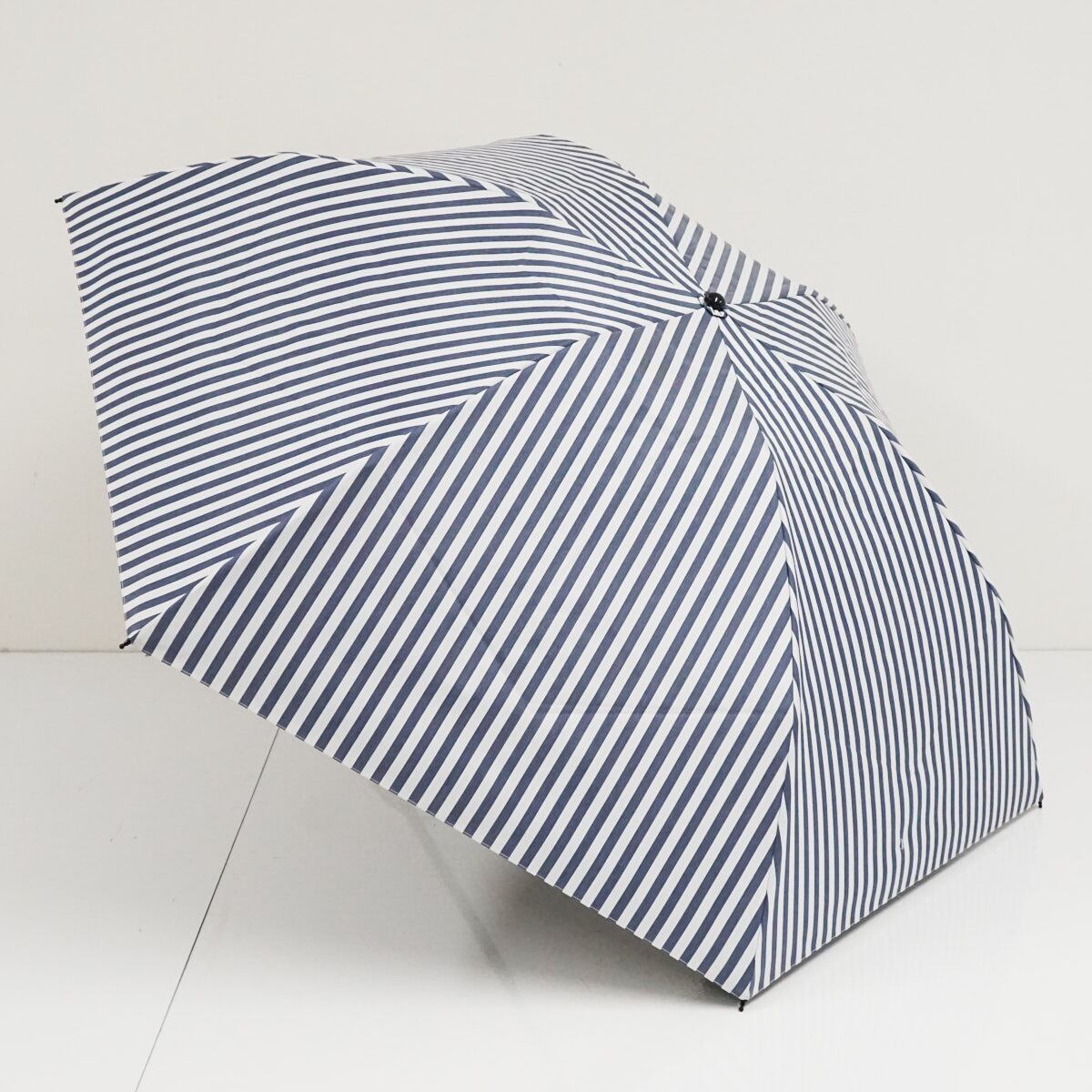 サンバリア100 完全遮光折日傘 USED品 3段折 ストライプ ネイビー 折りたたみ 日傘 UVカット 遮熱 55cm FS9041
