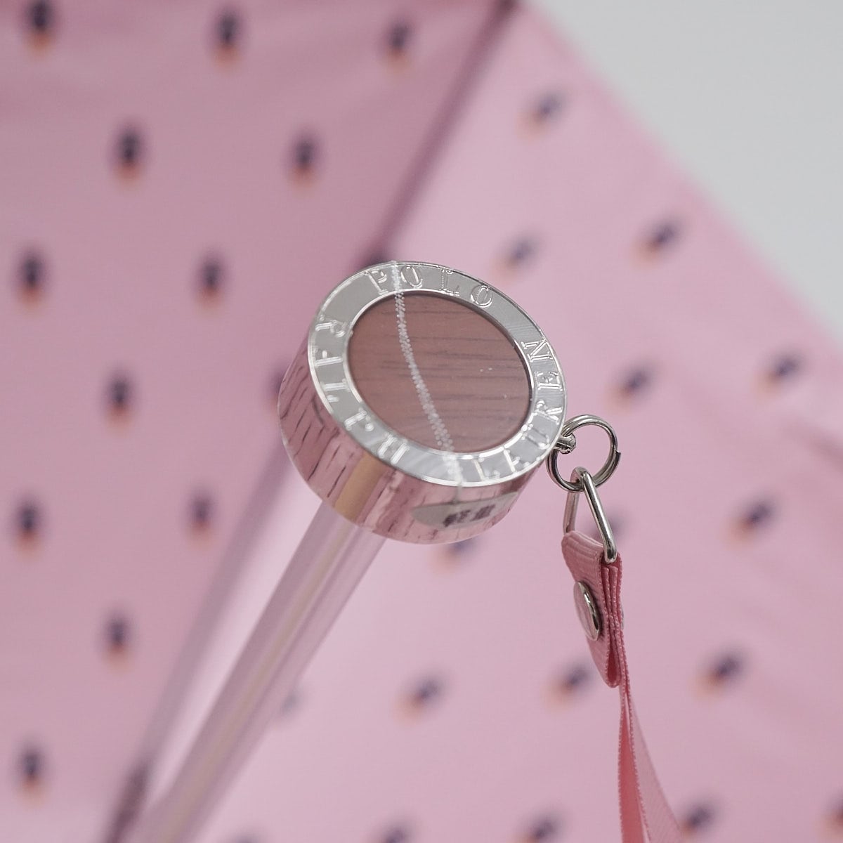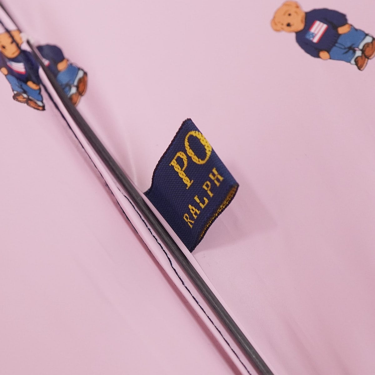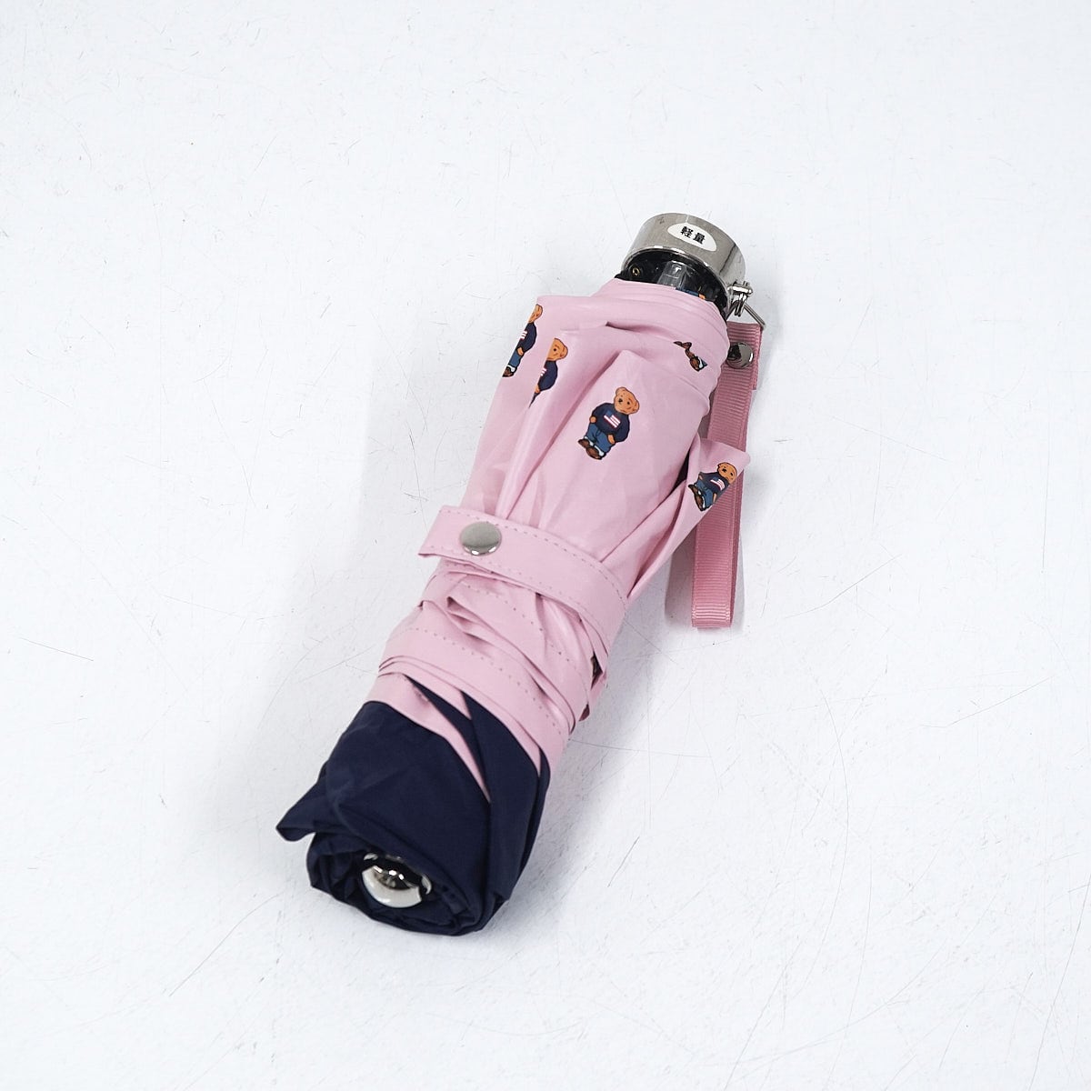 裏地にポロベアを散りばめたキュートなデザインの折りたたみパラソルです。