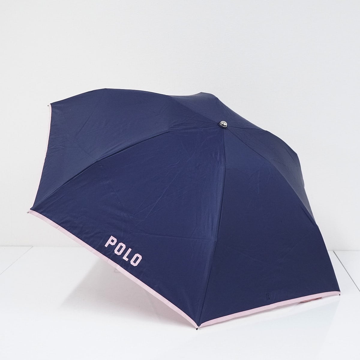 折りたたみ日傘 POLO RALPH LAUREN ポロラルフローレン USED品 一級遮光 晴雨兼用 ポロベア ロゴ ピンクxネイビー UV 軽量 50cm FS9030