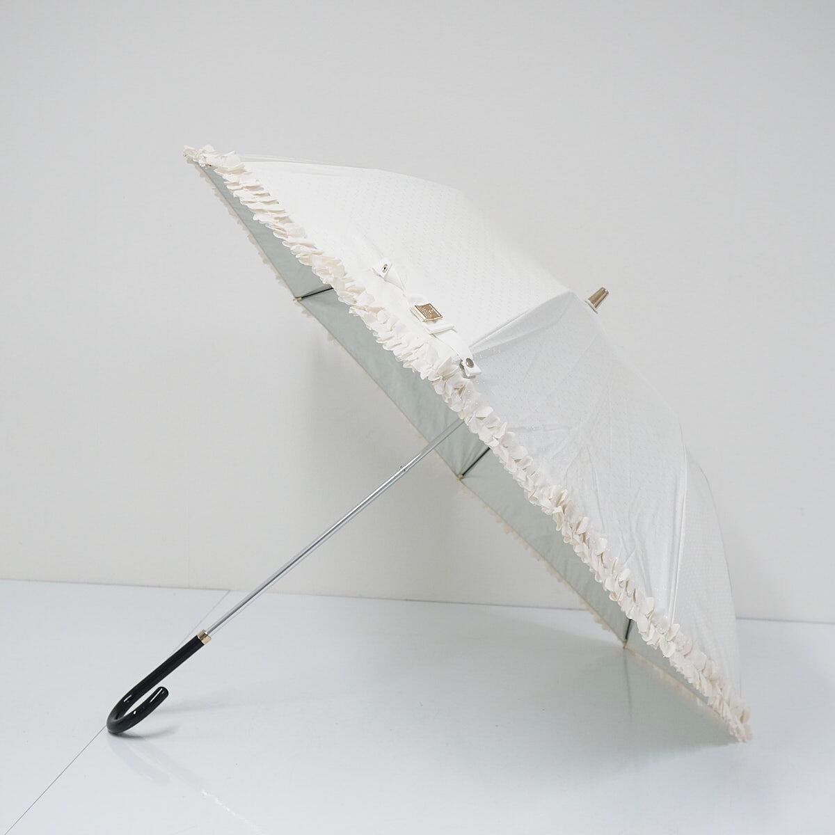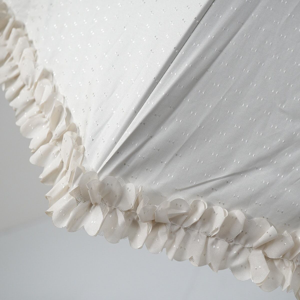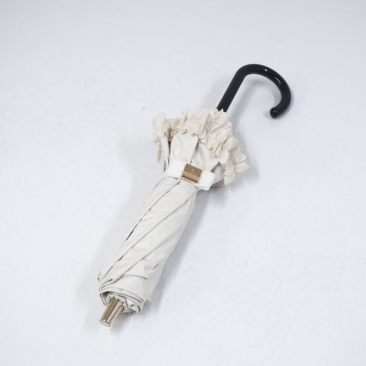 折りたたみ日傘 LANVIN en Bleu ランバンオンブルー USED品 晴雨兼用 ドビーフリル リボンドット ホワイト ガーリー UV 55cm FS9031
