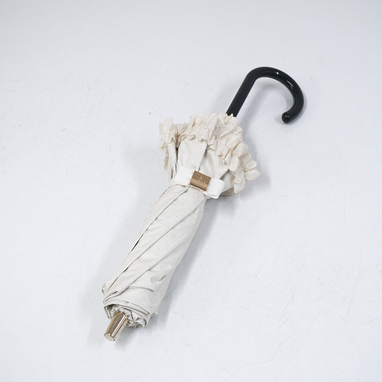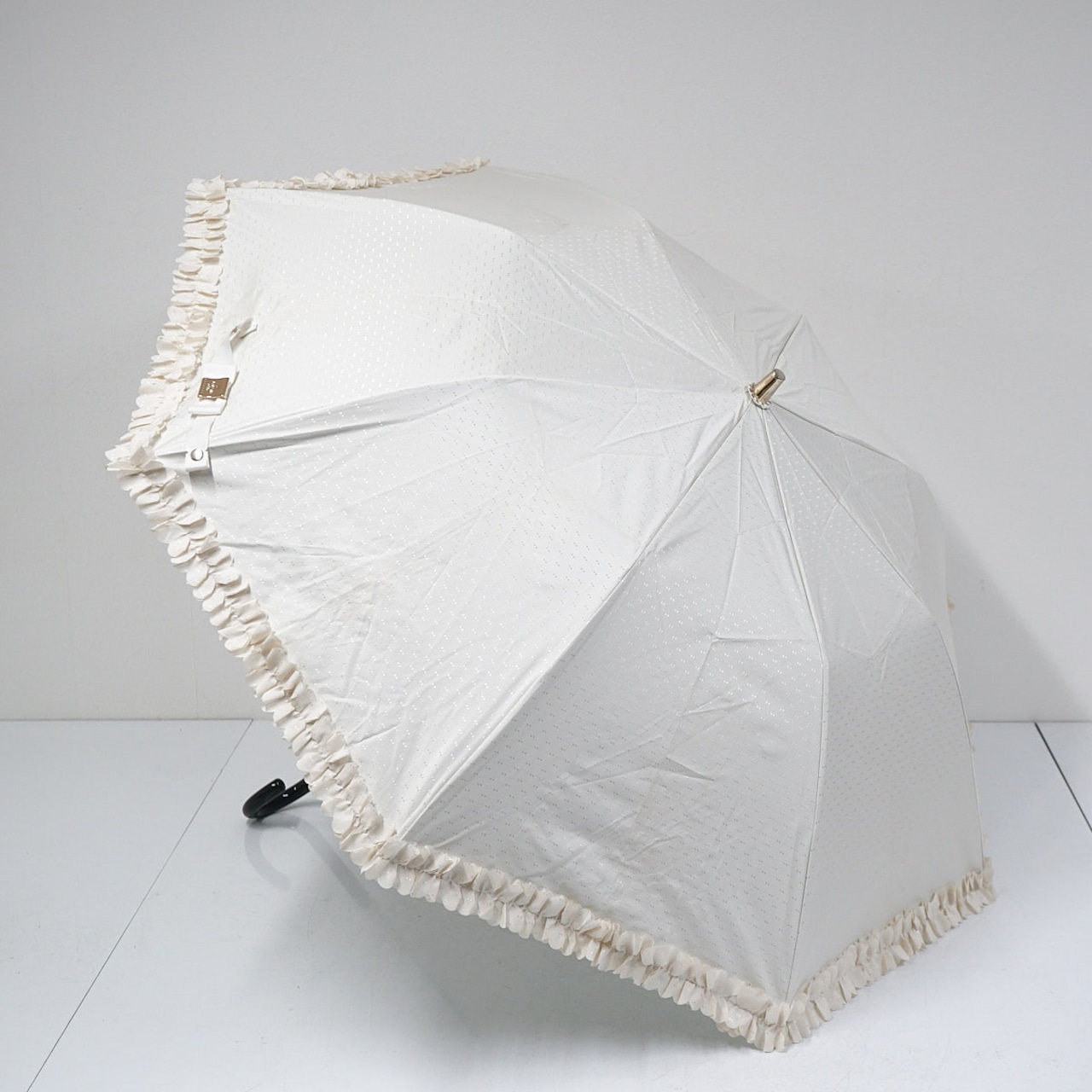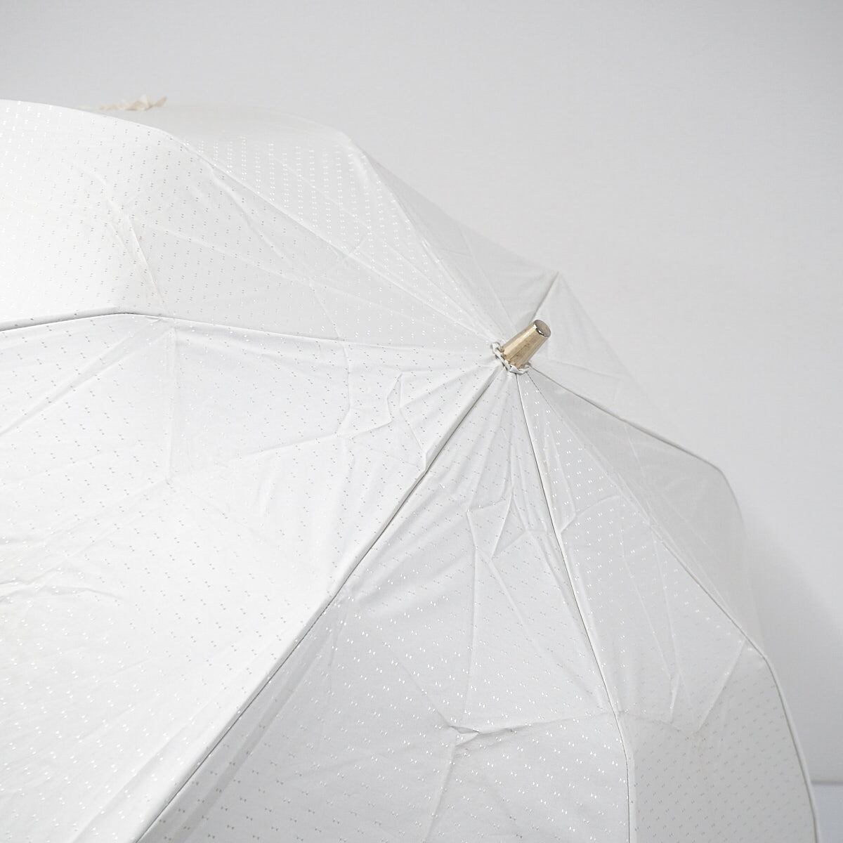 折りたたみ日傘 LANVIN en Bleu ランバンオンブルー USED品 晴雨兼用 ドビーフリル リボンドット ホワイト ガーリー UV 55cm FS9031
