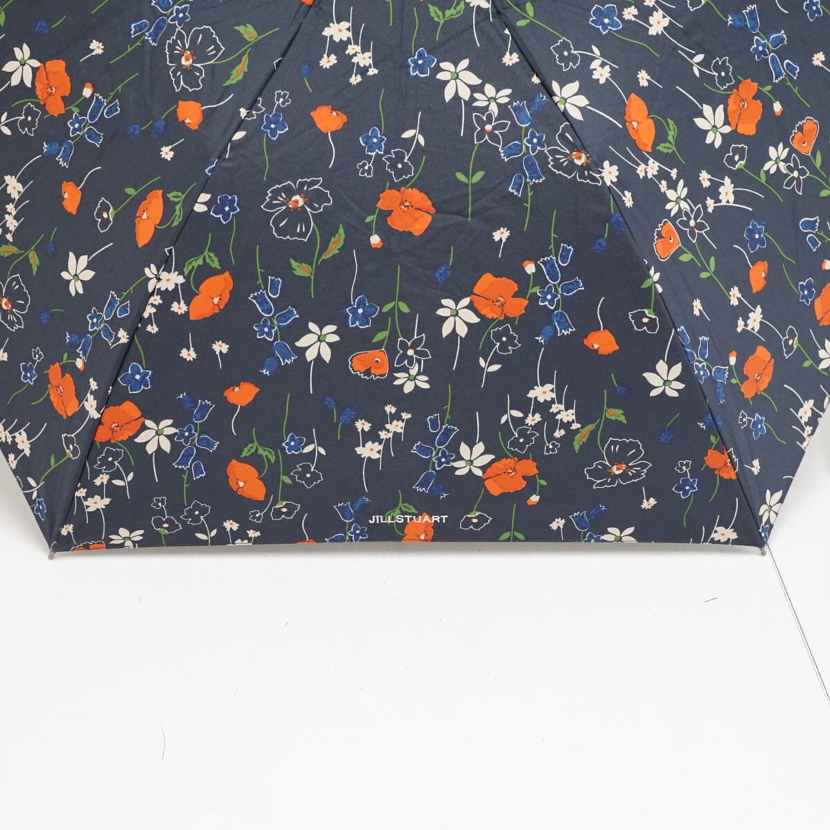 折りたたみ傘 JILL STUART ジルスチュアート USED美品 晴雨兼用 ネイビー フラワープリント 遮光 遮熱 50cm FA9040