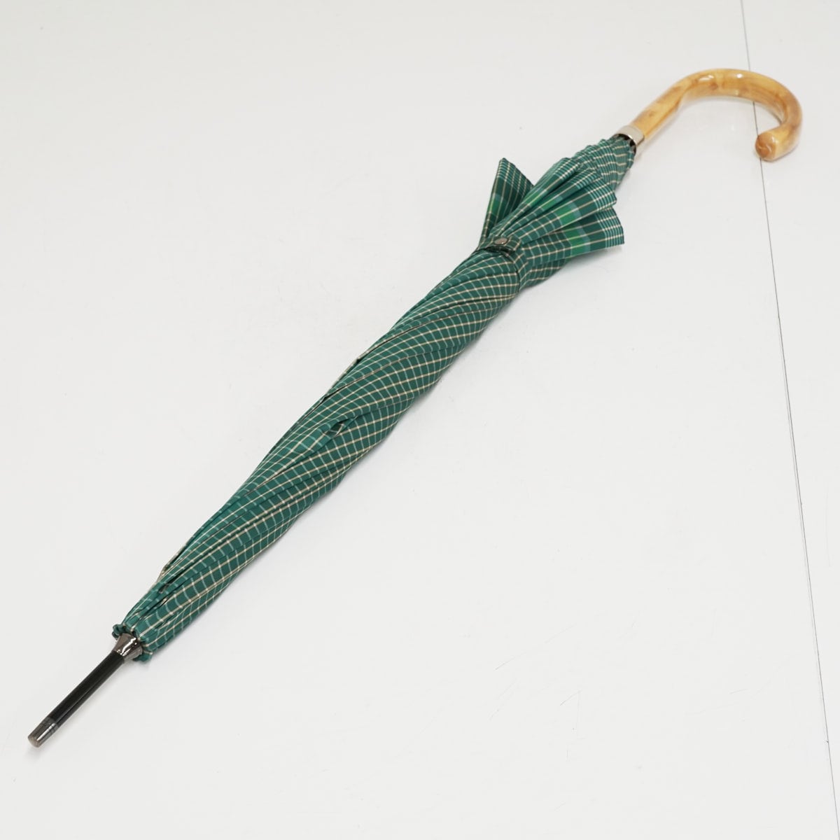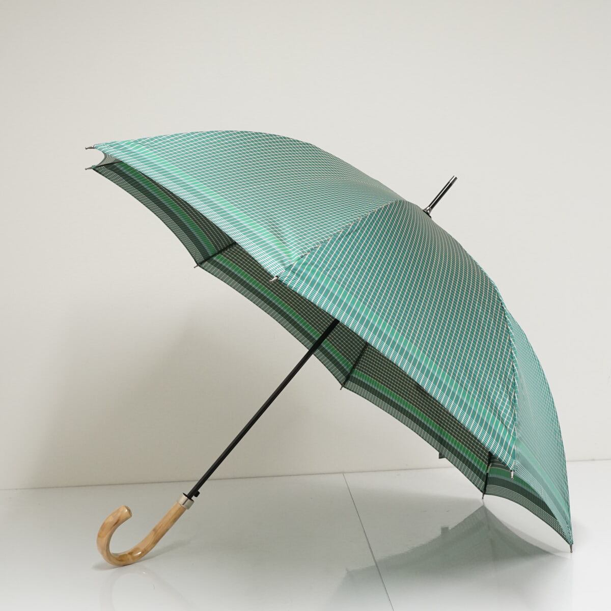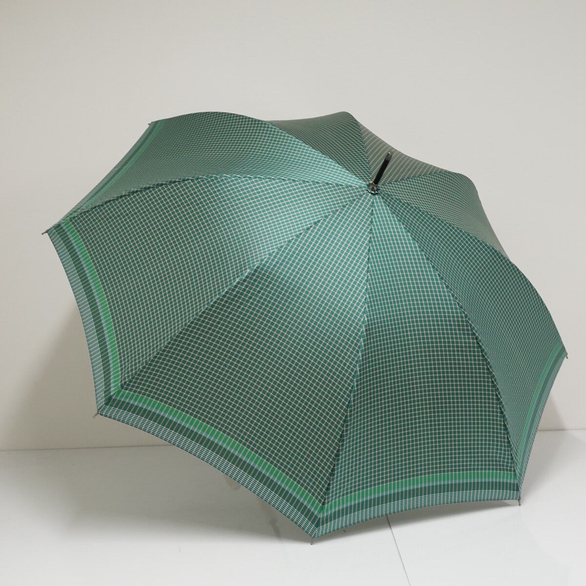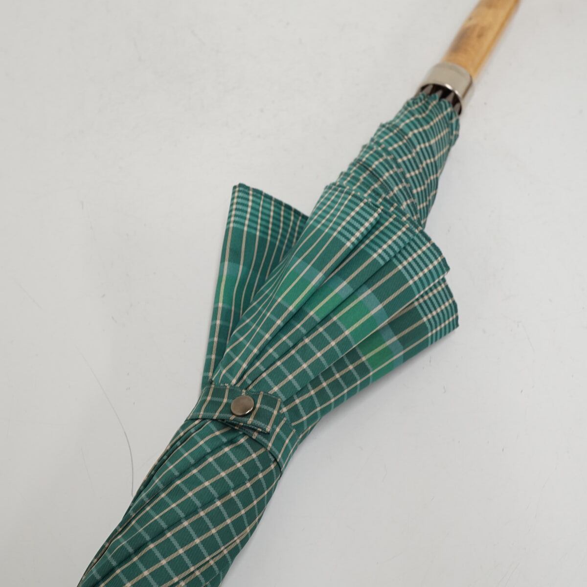 傘 槇田商店 USED美品 高級 紳士傘 チェック ジャガード 木製手元 グリーン 65cm S2925