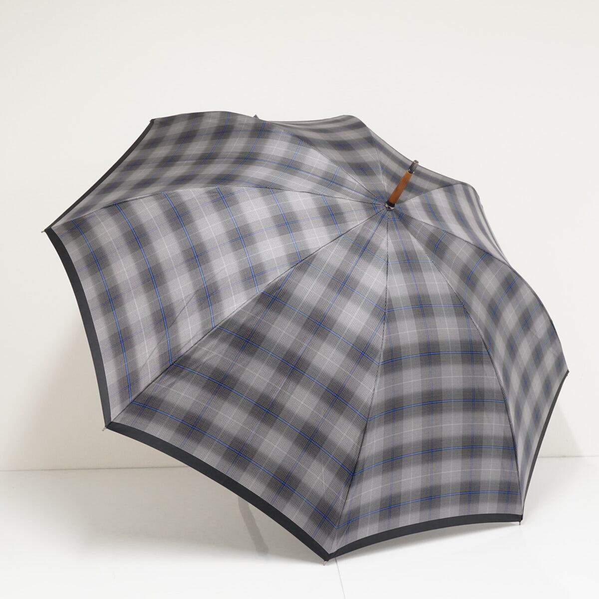 甲州織りで織ったグラデーションのチェックがお洒落な紳士雨傘です。