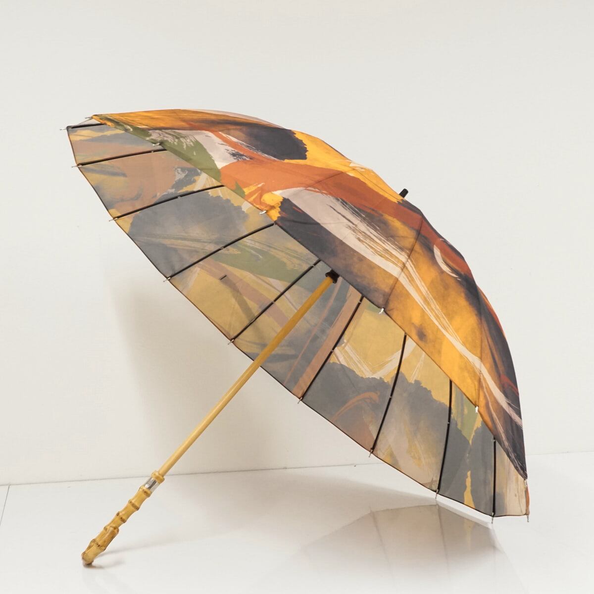 傘布全面に大胆でモダンな和柄のグラフィックデザインを施した16本の骨組の長傘です。