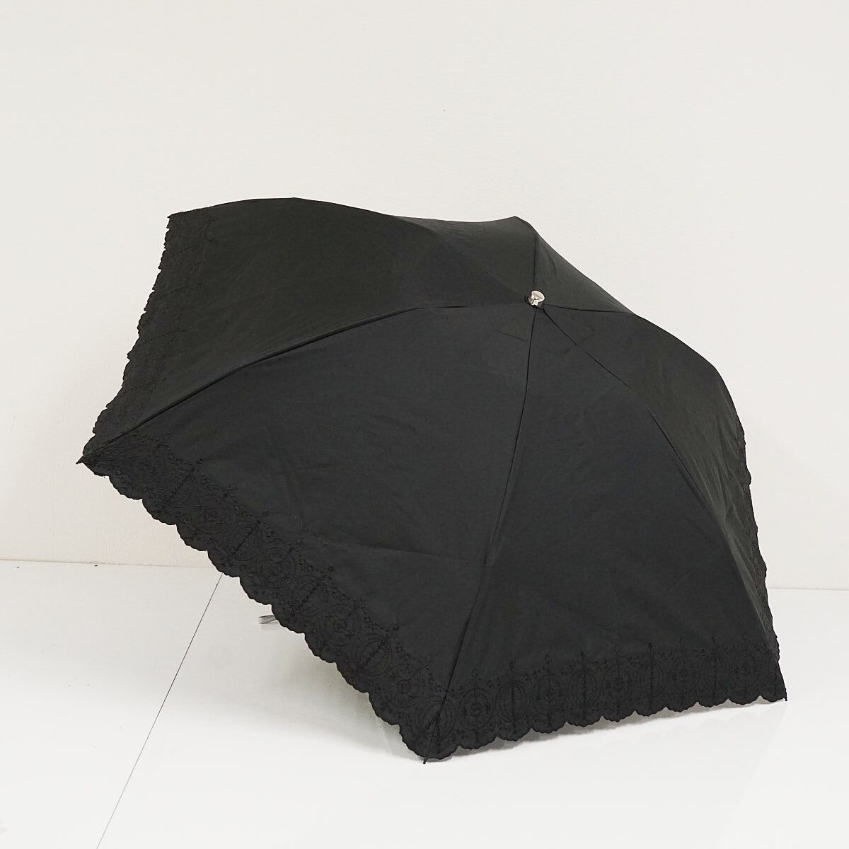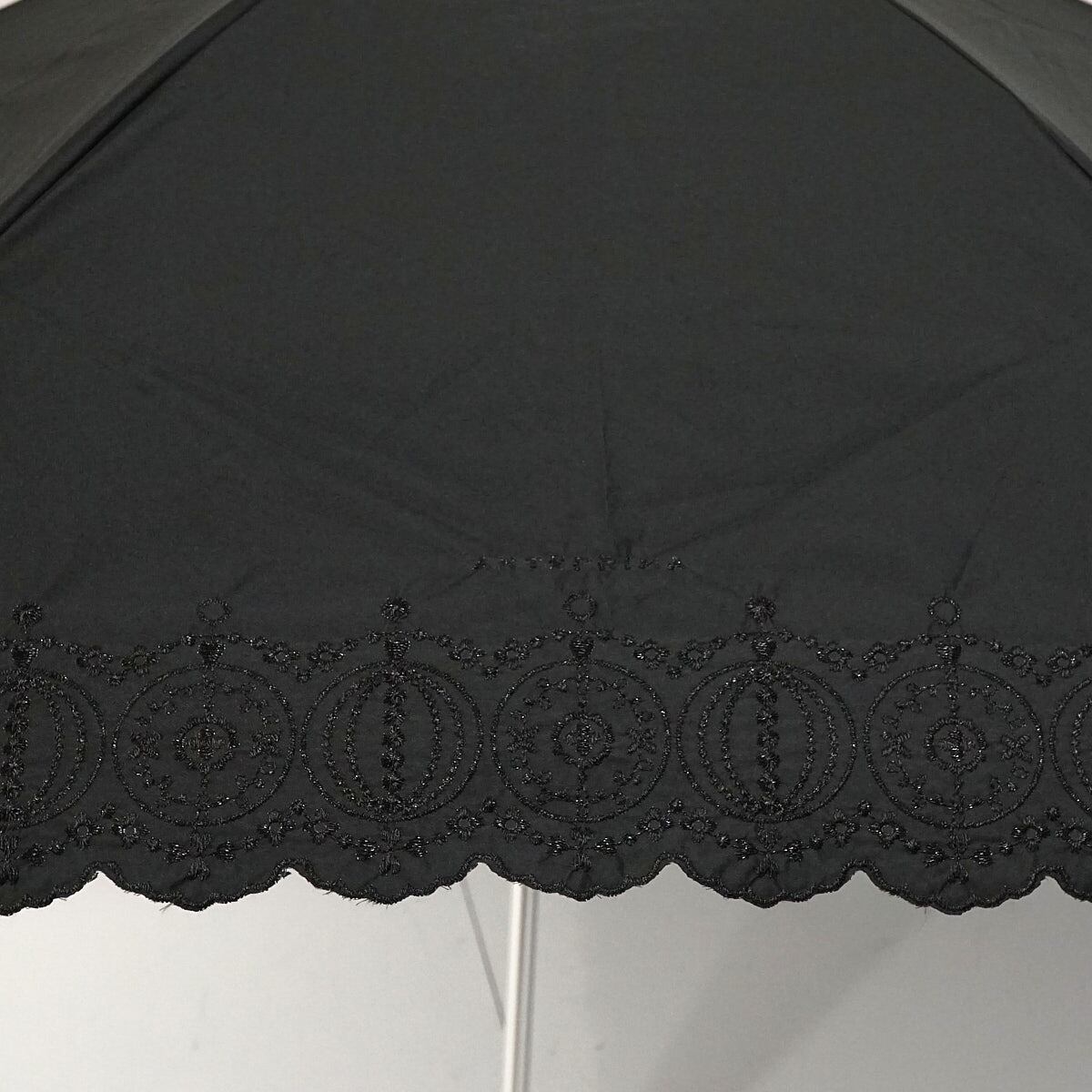 折りたたみ日傘 ANTEPRIMA アンテプリマ USED美品 東レ サマーシールドLi 刺繍 晴雨兼用 ブラック UV 遮光 遮熱 FS9056