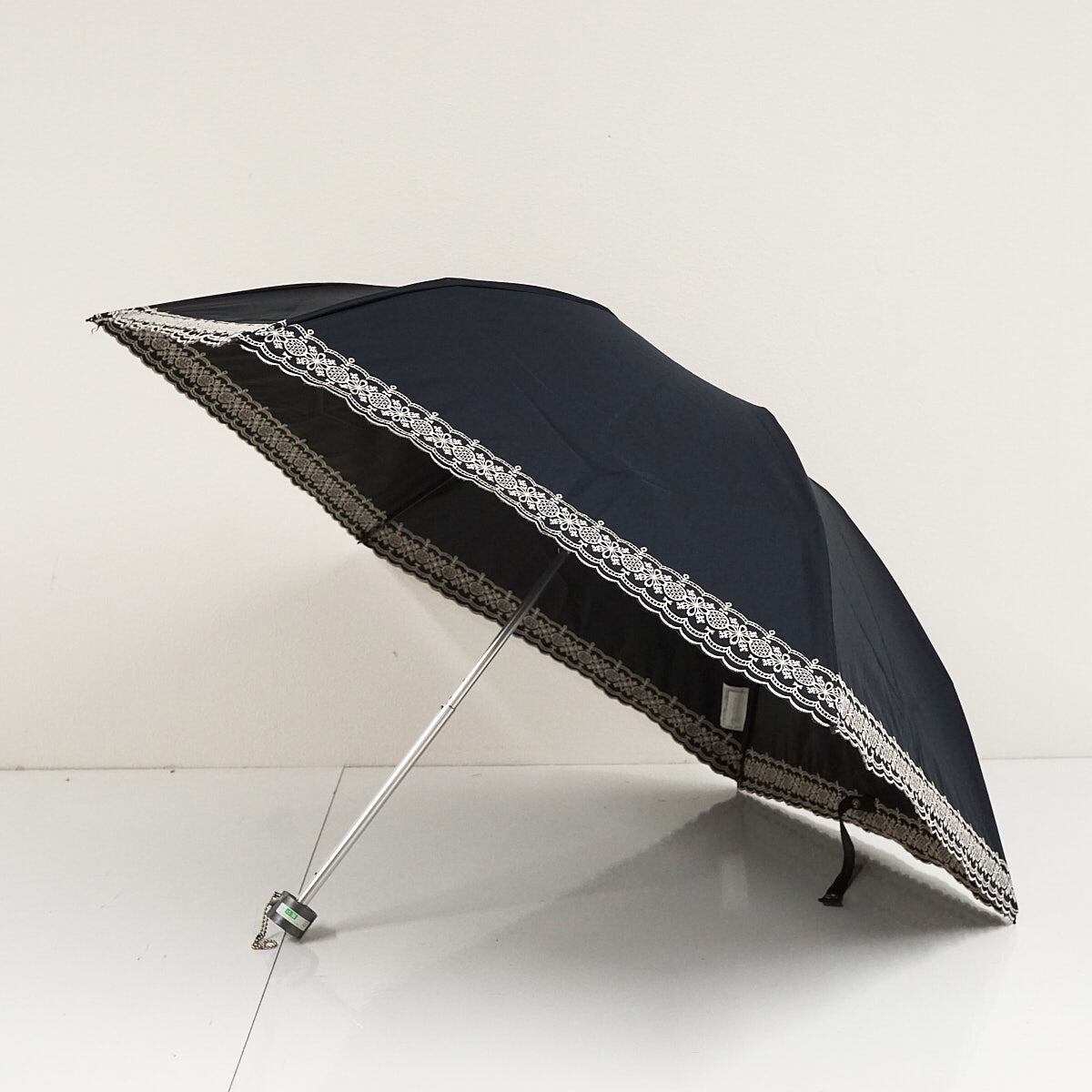 折りたたみ日傘 AURORA オーロラ(株) USED品 東レ サマーシールド Li 晴雨兼用 刺繍 軽量 遮熱 遮光 UV ブラック 50cm FS9055