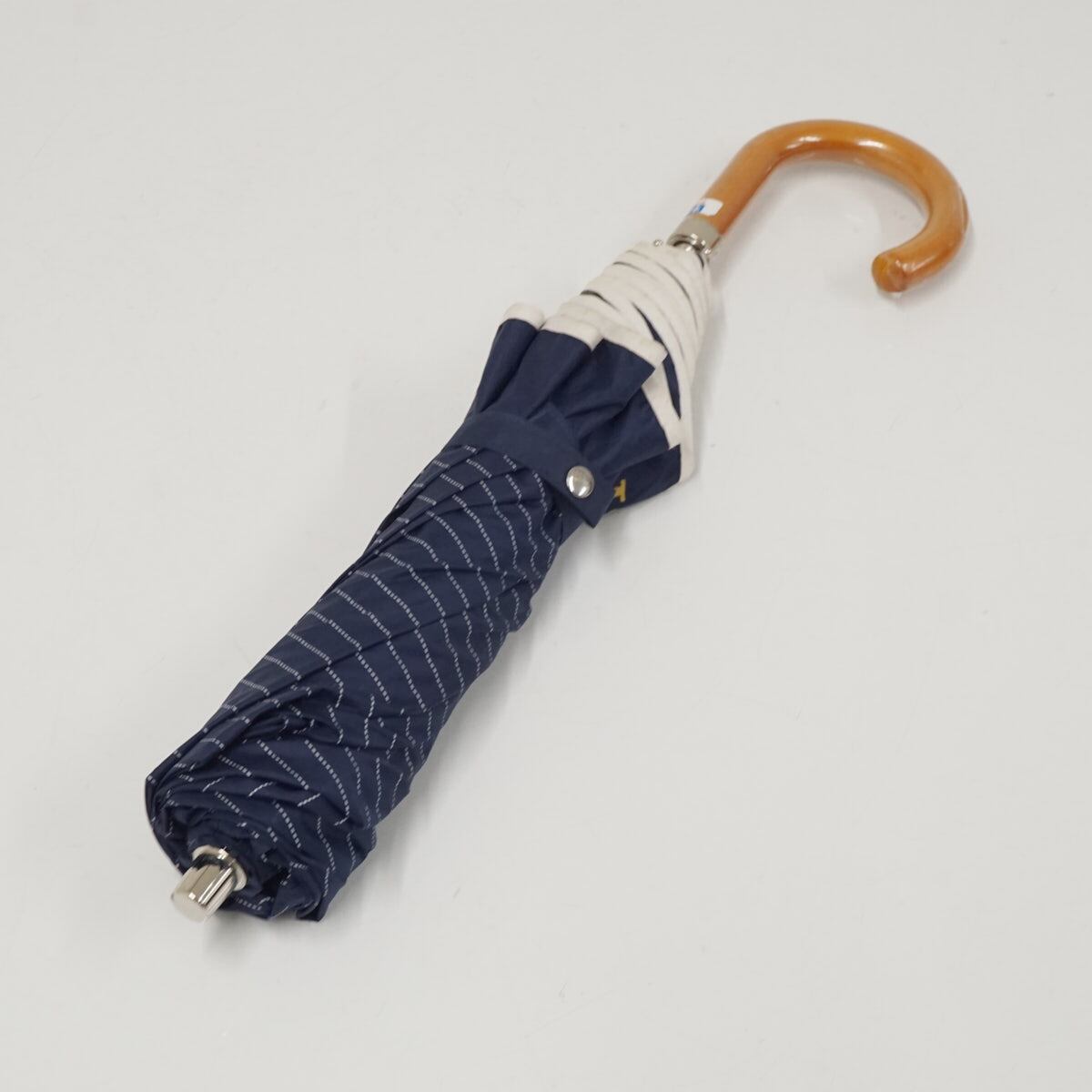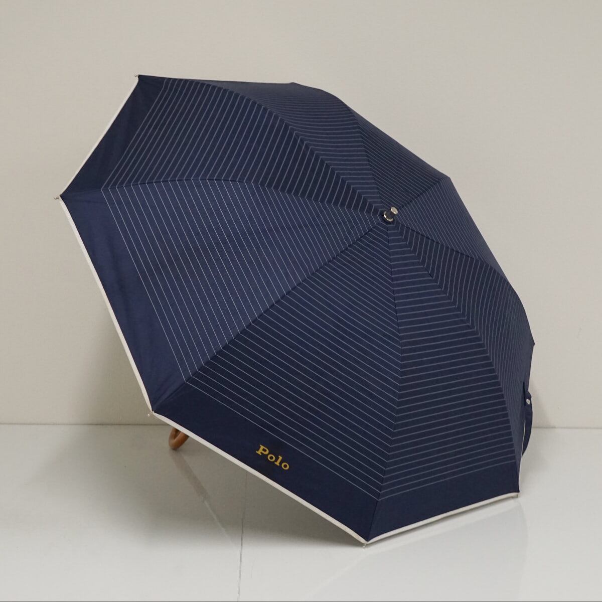 折りたたみ傘 POLO RALPH LAUREN ポロラルフローレン USED品 晴雨兼用 ボーダー UV 50cm ロゴ 木製手元 ネイビー FA9067