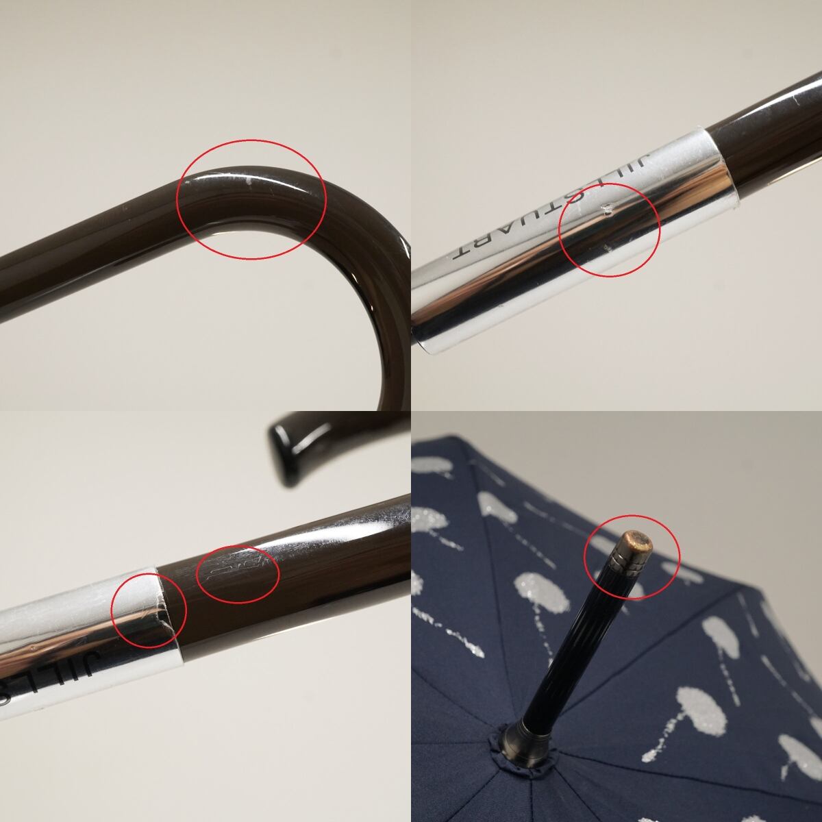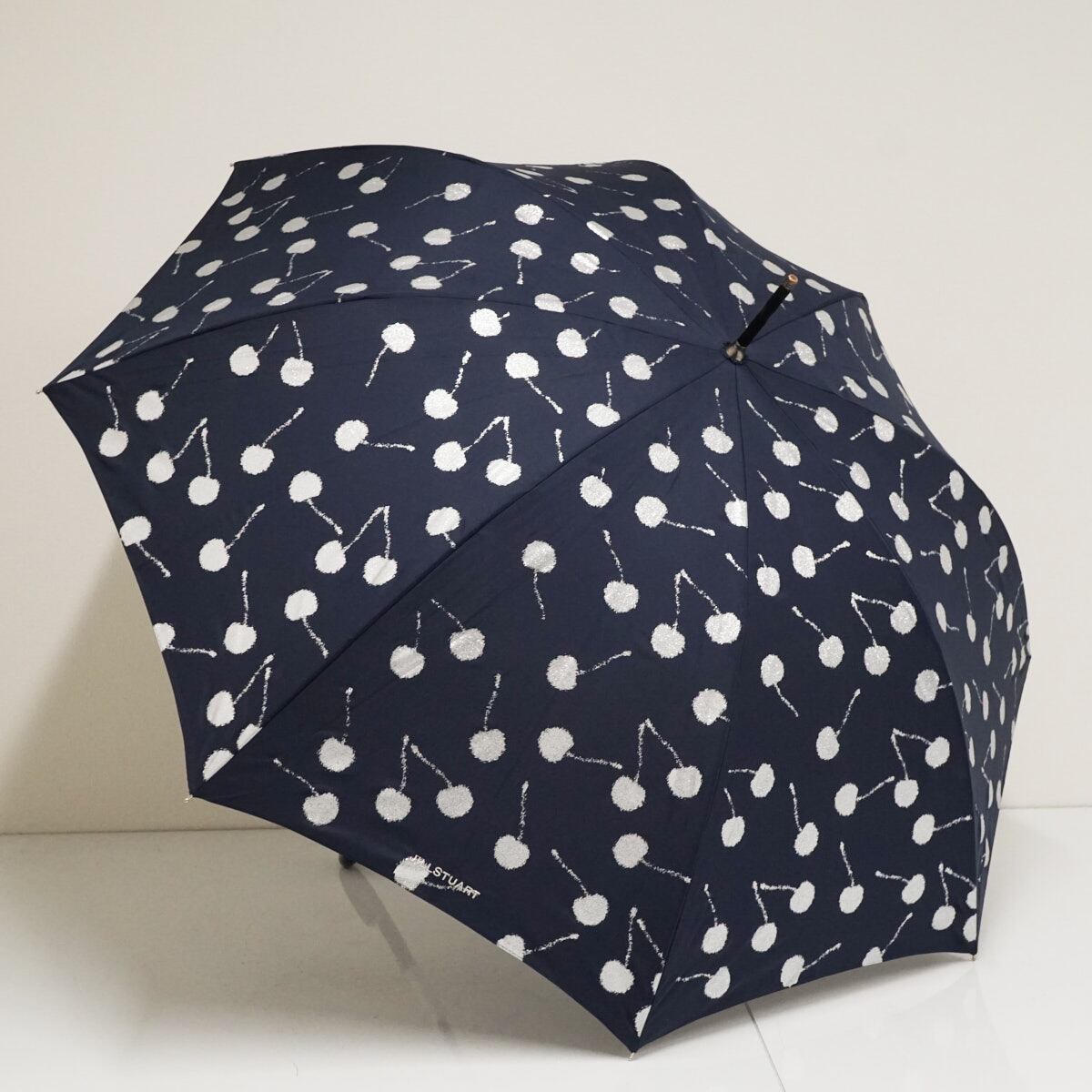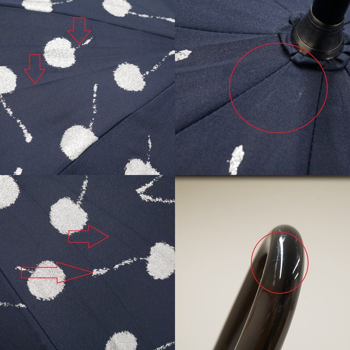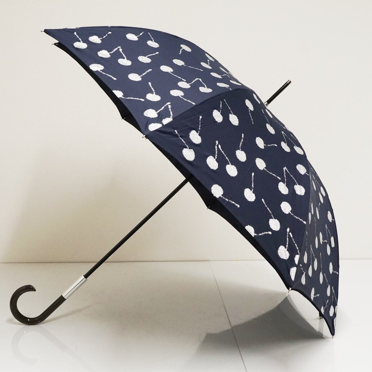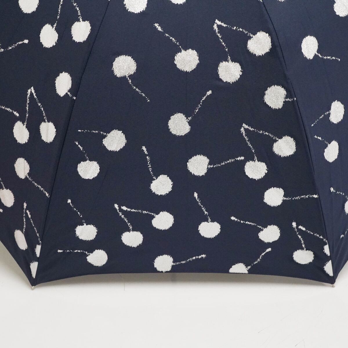 傘 JILLSTUART ジルスチュアート USED美品 雨傘 チェリー ラメ ネイビー グラス骨 60cm A3301