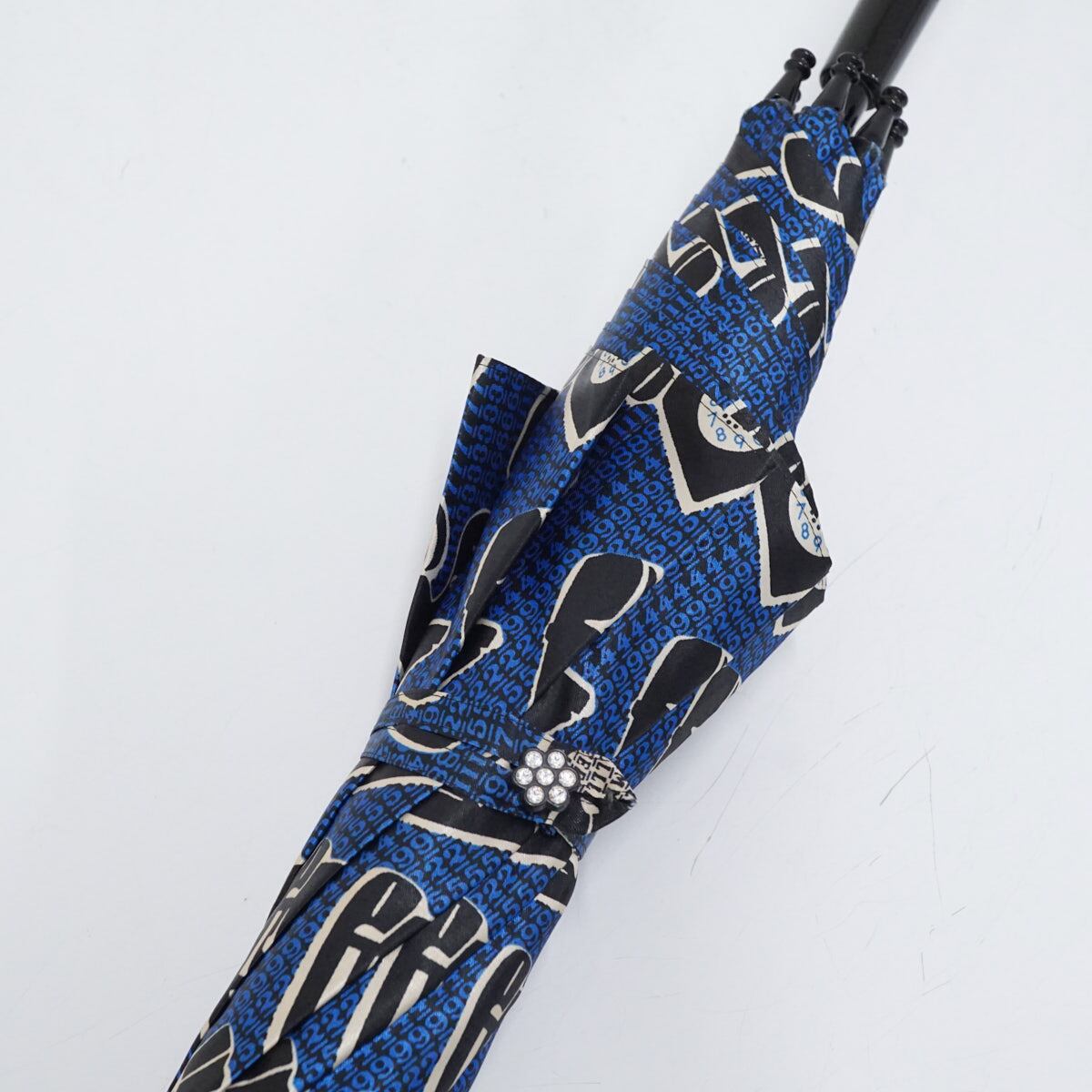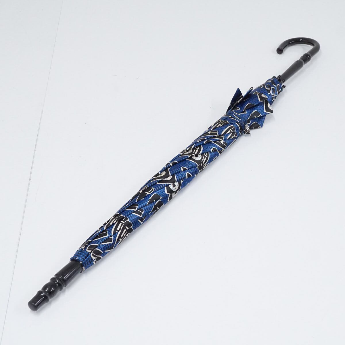 傘 ANNA SUI アナスイ パゴダ傘 USED美品 アート ブルー系 黒電話 個性的 グラス骨 58cm S2949