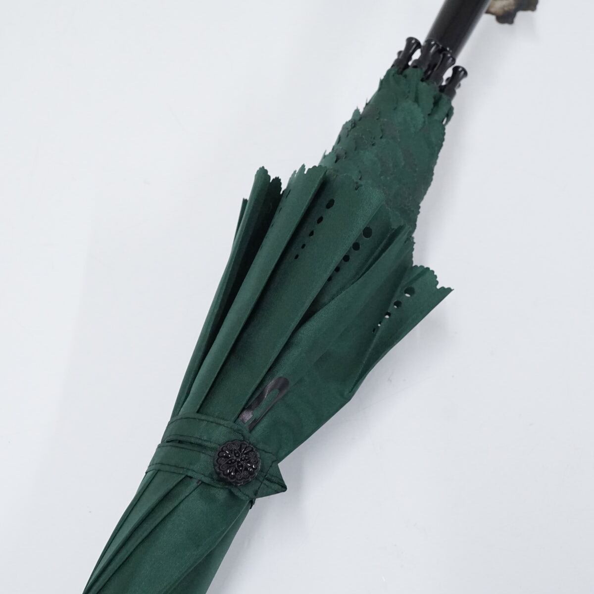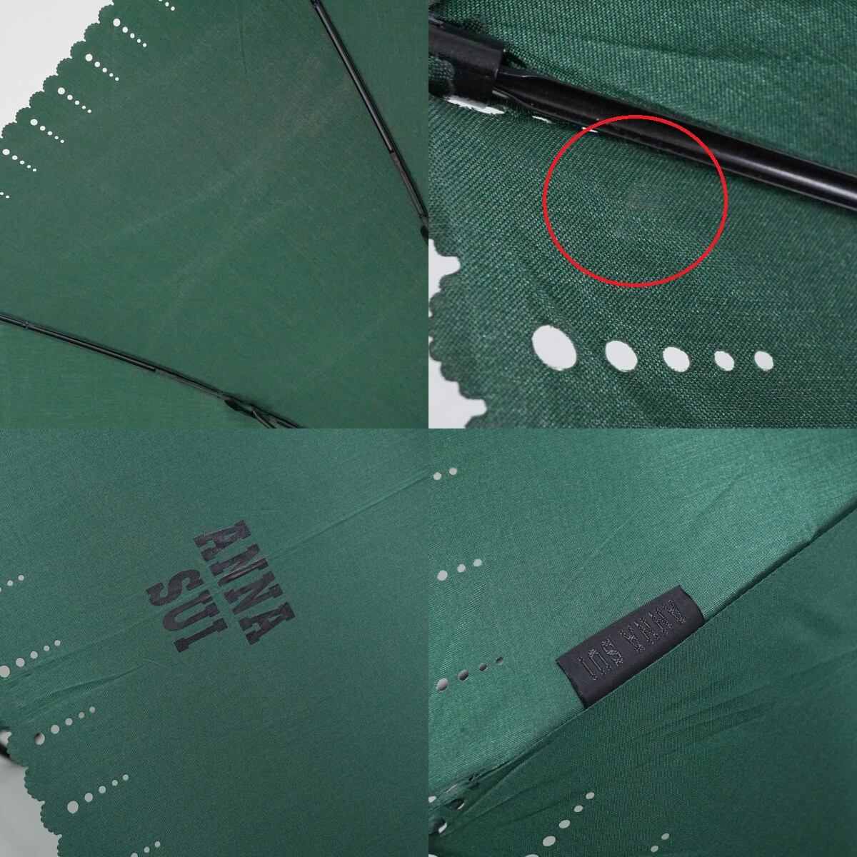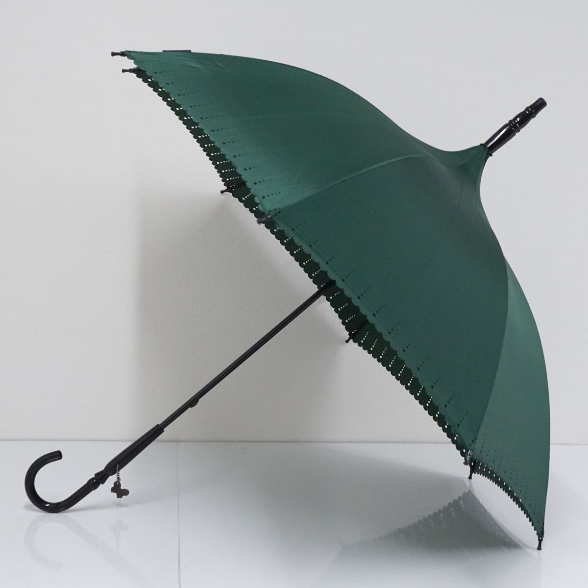傘 ANNA SUI アナスイ パゴダ傘 USED美品 グリーン ロゴ ブランド チャーム付き 55cm S2951