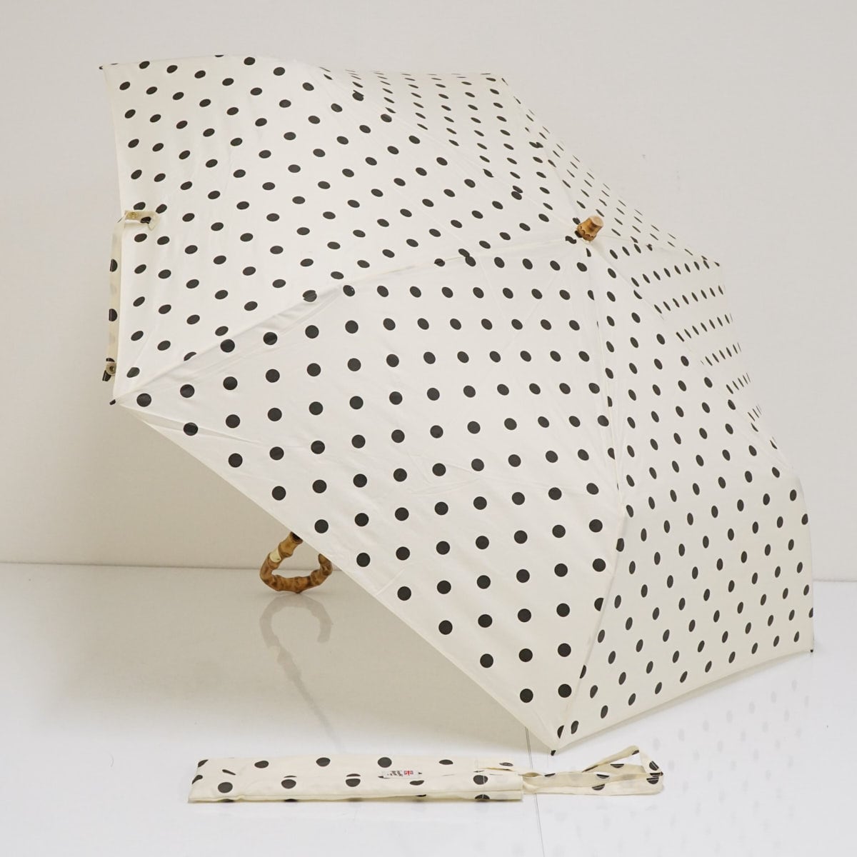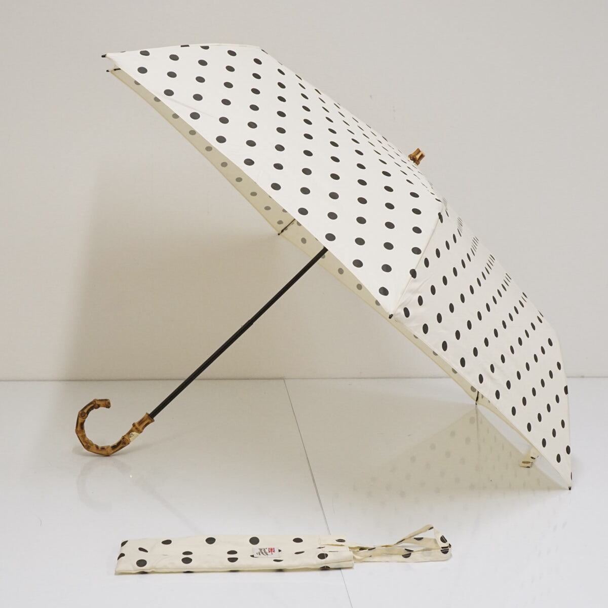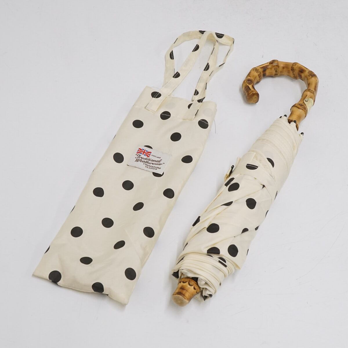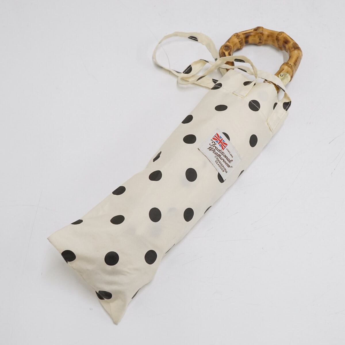 折りたたみ傘 Traditional Weatherwear トラディショナルウェザーウェア USED美品 ドット オフホワイト 高級傘 折傘 55cm FS9091
