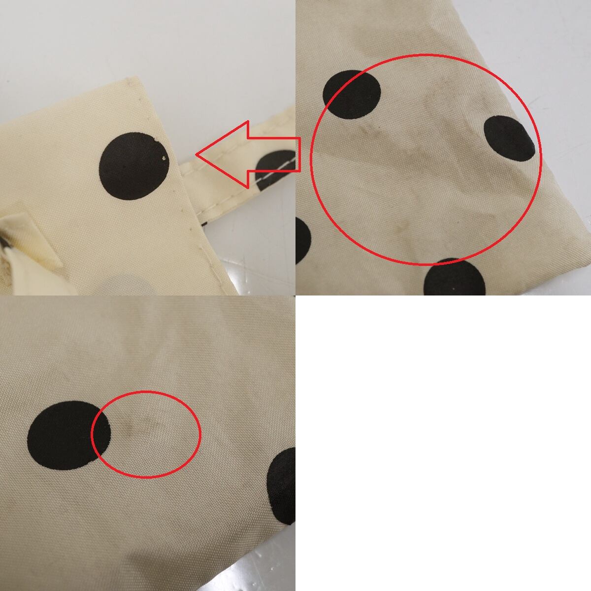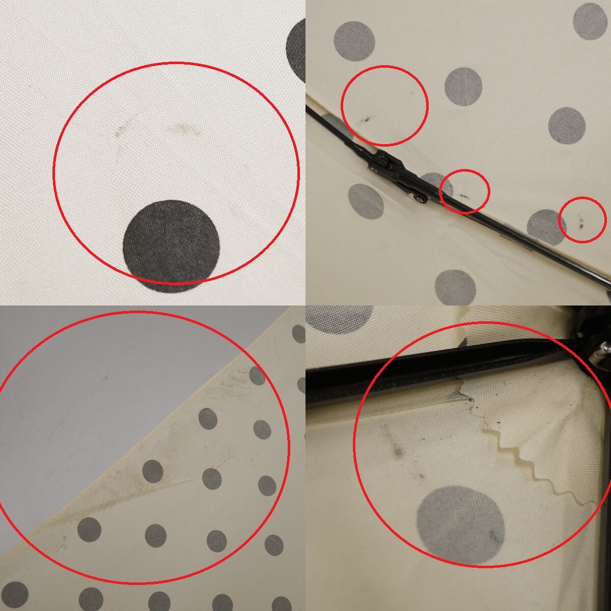 ※傘本体と収納袋の生地に汚れがあります。(一部を画像にてご確認ください。画像よりも実物の方が若干気になります。)