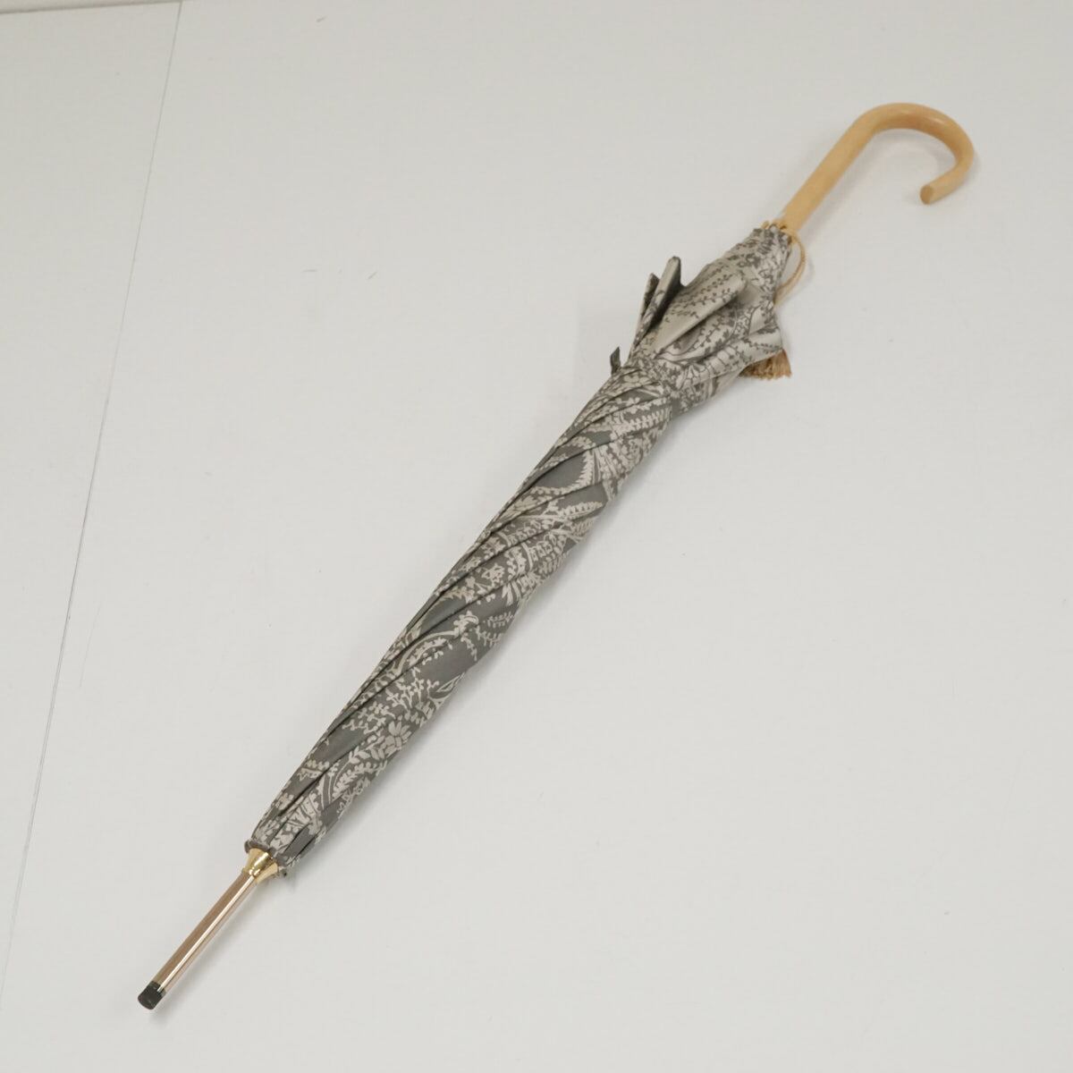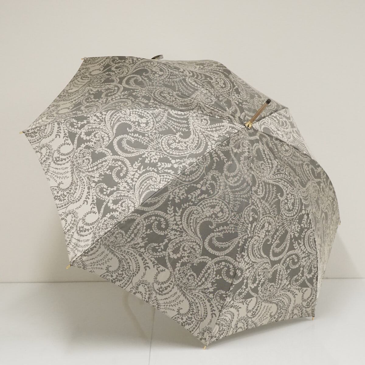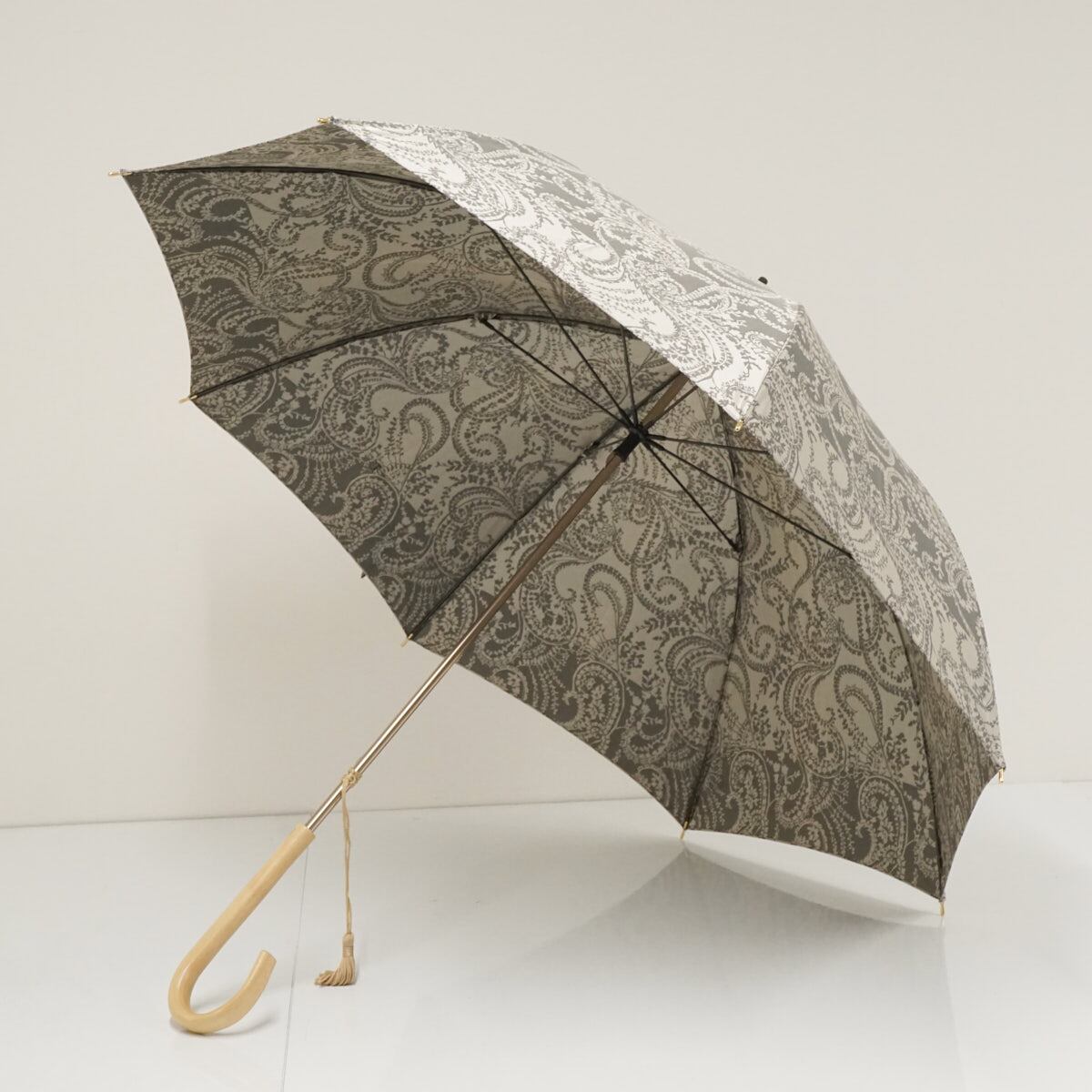 傘 ASTY アスティ USED美品 日本製 高級傘 木製手元 甲州織 UV ペイズリー グレー 60cm S2958