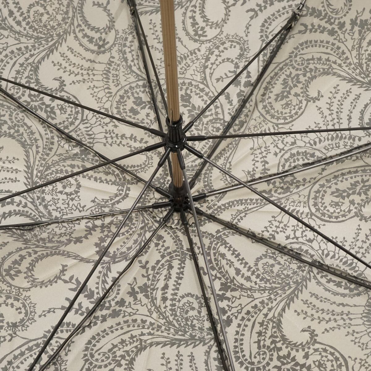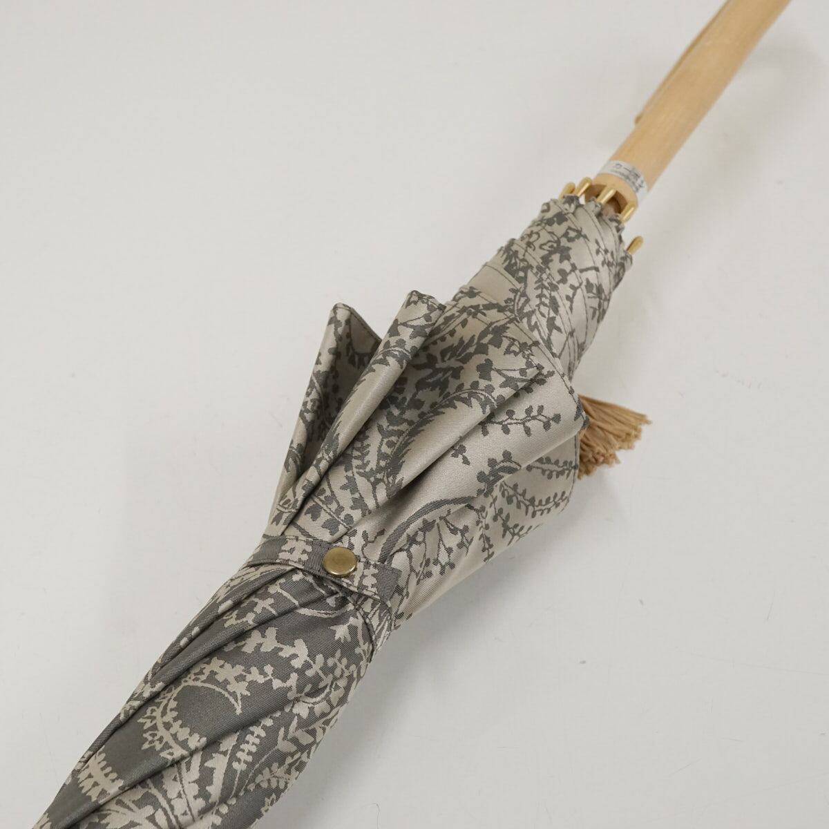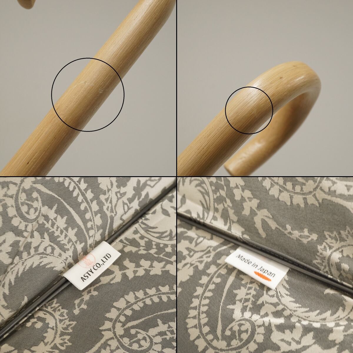 傘 ASTY アスティ USED美品 日本製 高級傘 木製手元 甲州織 UV ペイズリー グレー 60cm S2958