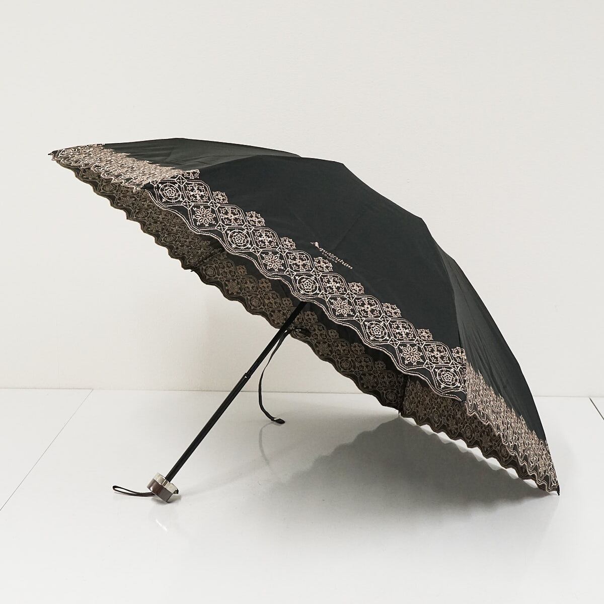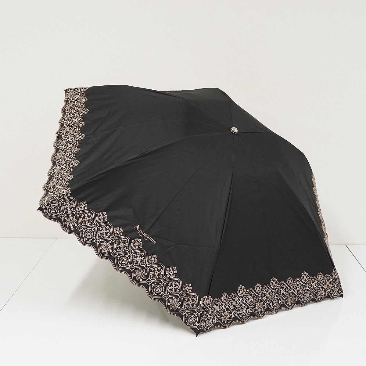 折りたたみ日傘 Aquascutum アクアスキュータム USED美品 一級遮光 晴雨兼用 ブラック 刺繍 UV 遮熱 紫外線対策 ブランド 50cm FS9084