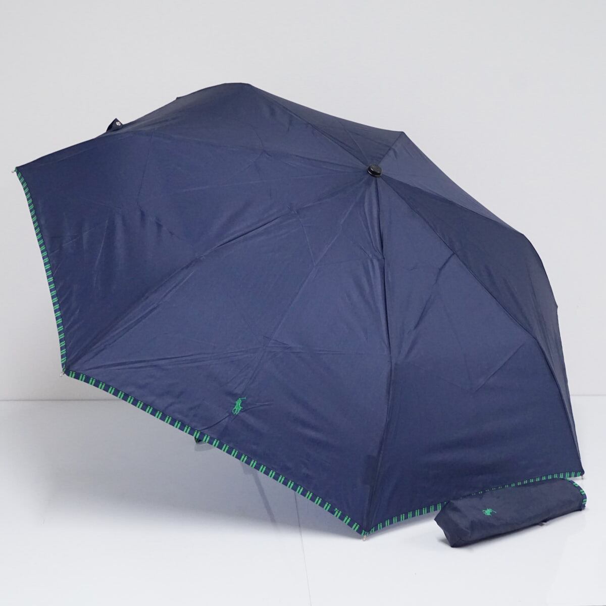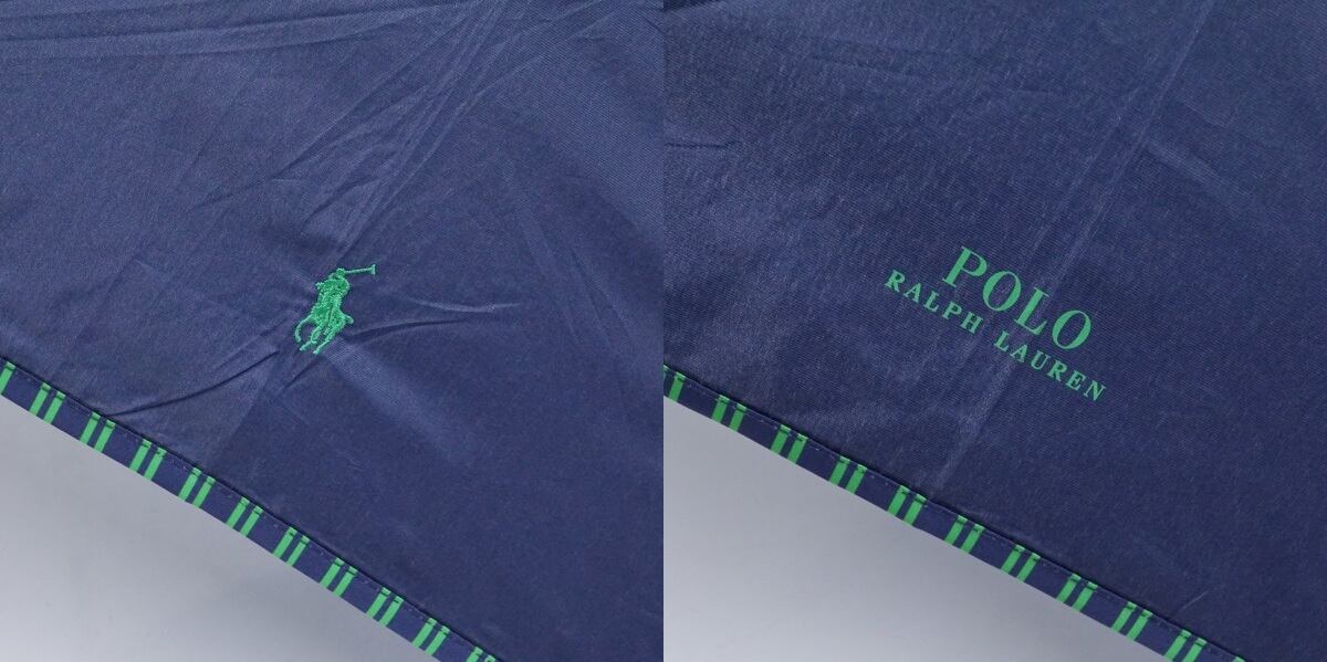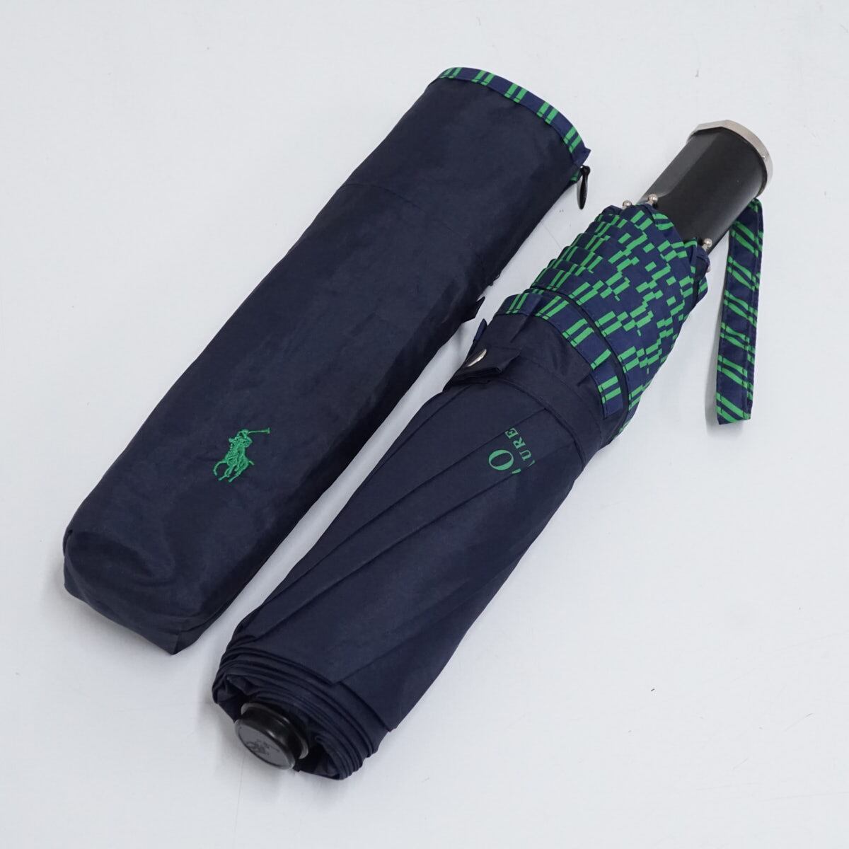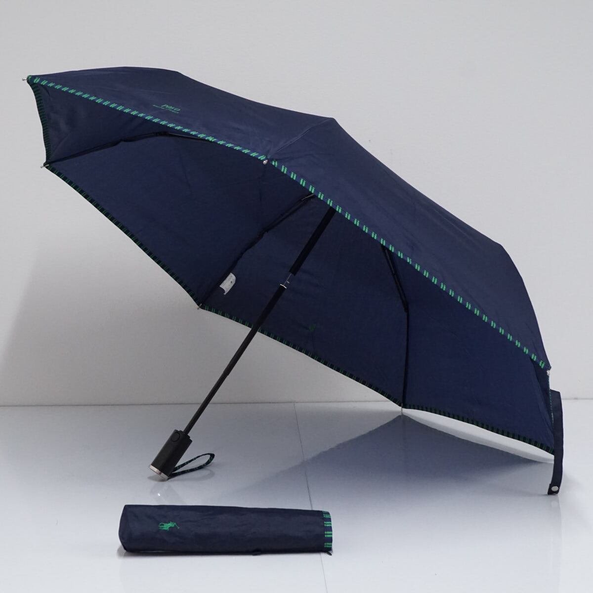 自動開閉 折りたたみ傘 POLO RALPH LAUREN ラルフローレン USED美品 ポロポニー刺繍 ネイビー ロゴ 60cm FS9102