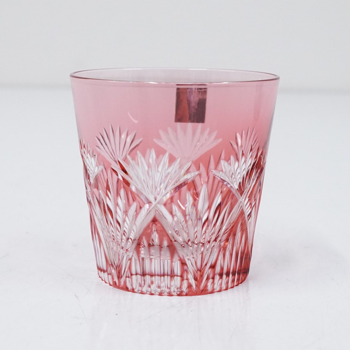 カガミクリスタル USED超美品 江戸切子 冷酒杯 ペアミニロック 120? 笹っ葉に斜十文字 赤青 #2406 食器 グラス X7323