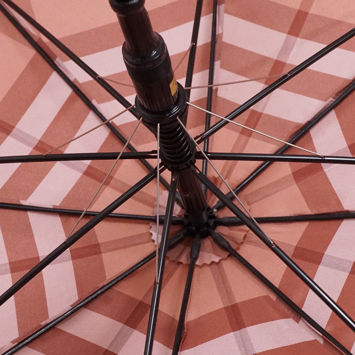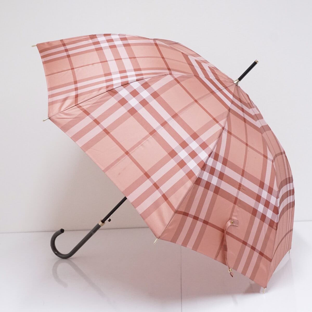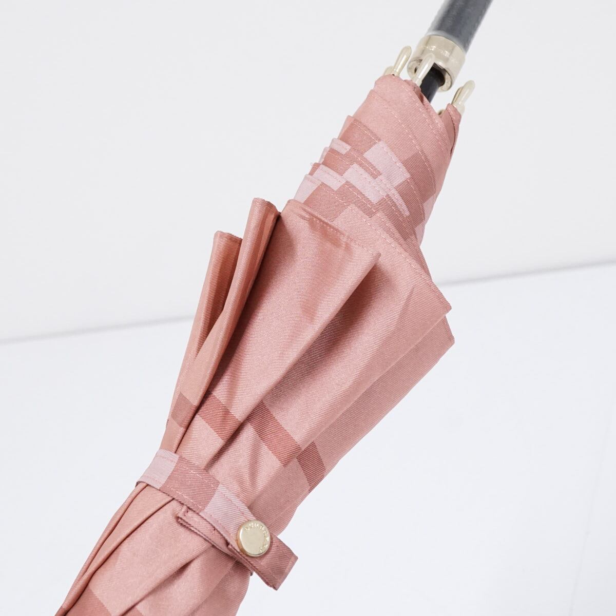 高級傘 BURBERRY バーバリー USED美品 定番 チェック レディース ピンク ジャガード ジャンプ 高級 レザー手元 60cm S2971
