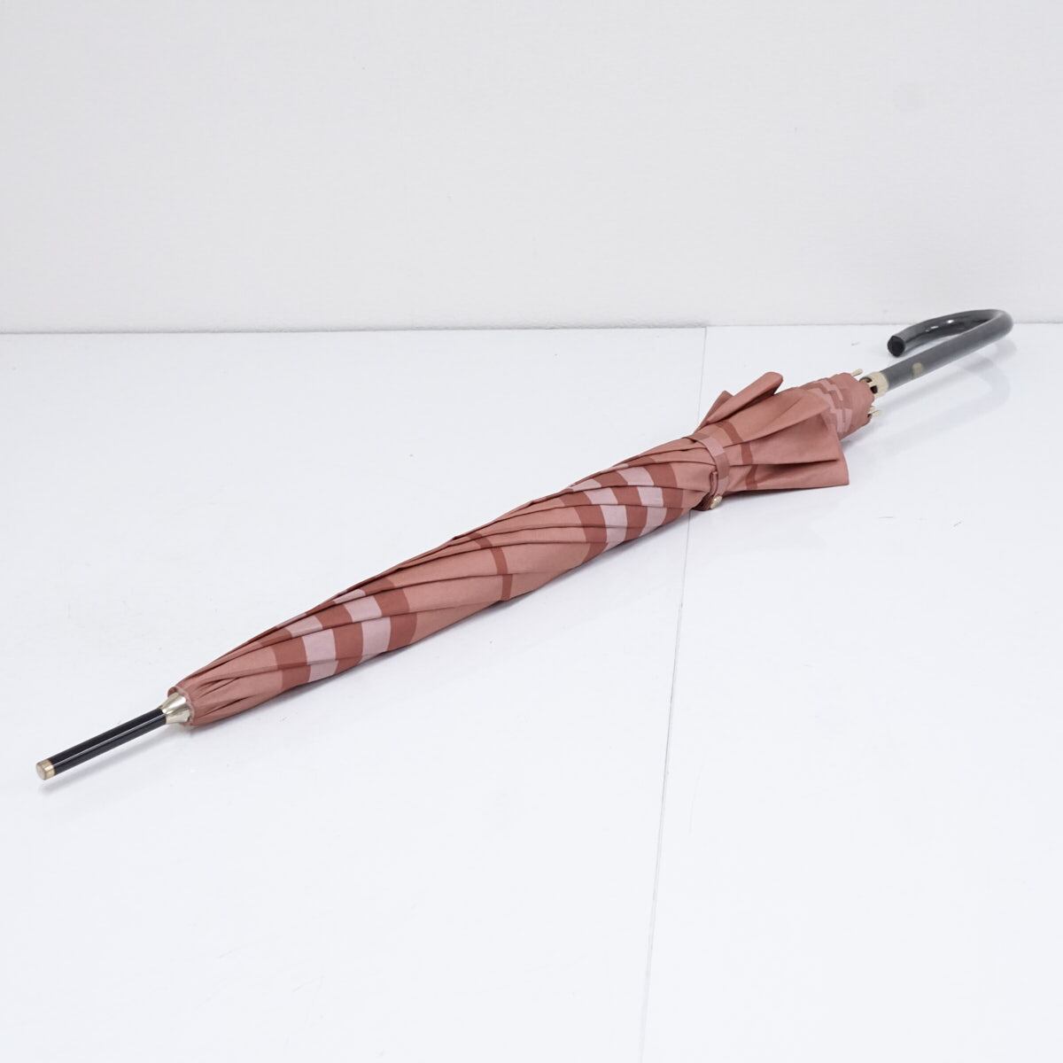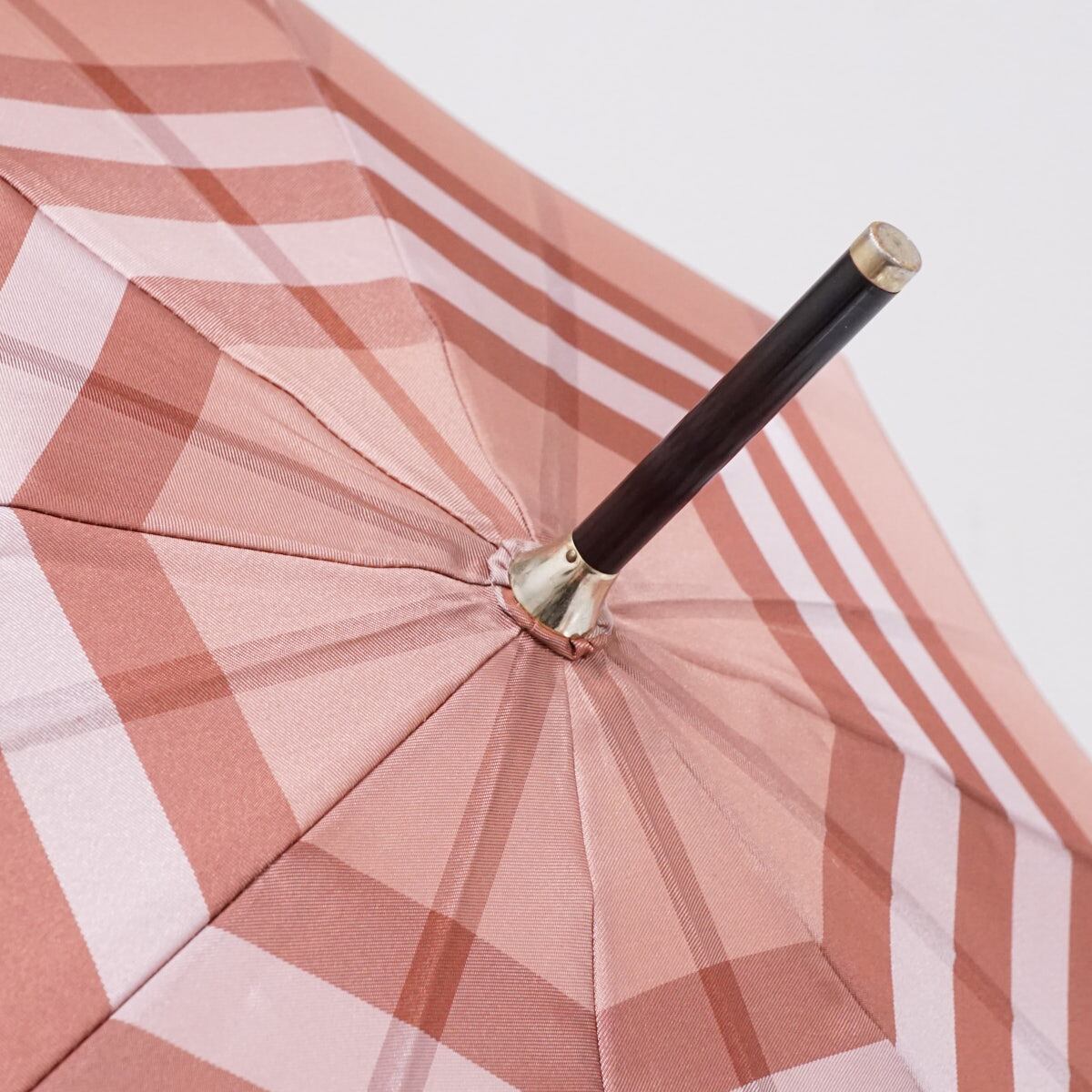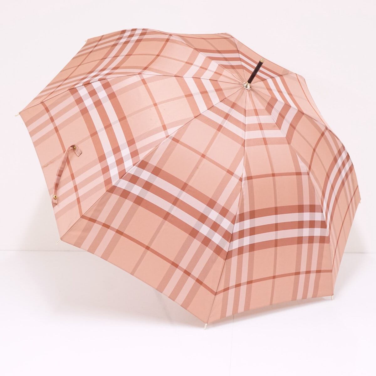 高級傘 BURBERRY バーバリー USED美品 定番 チェック レディース ピンク ジャガード ジャンプ 高級 レザー手元 60cm S2971