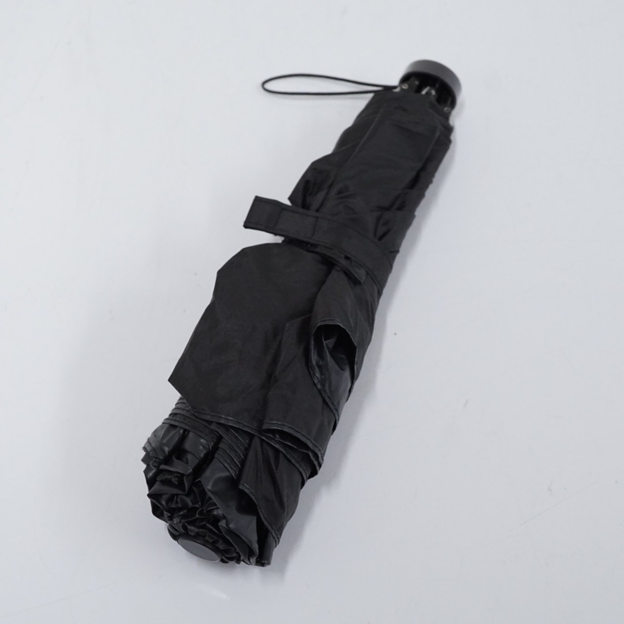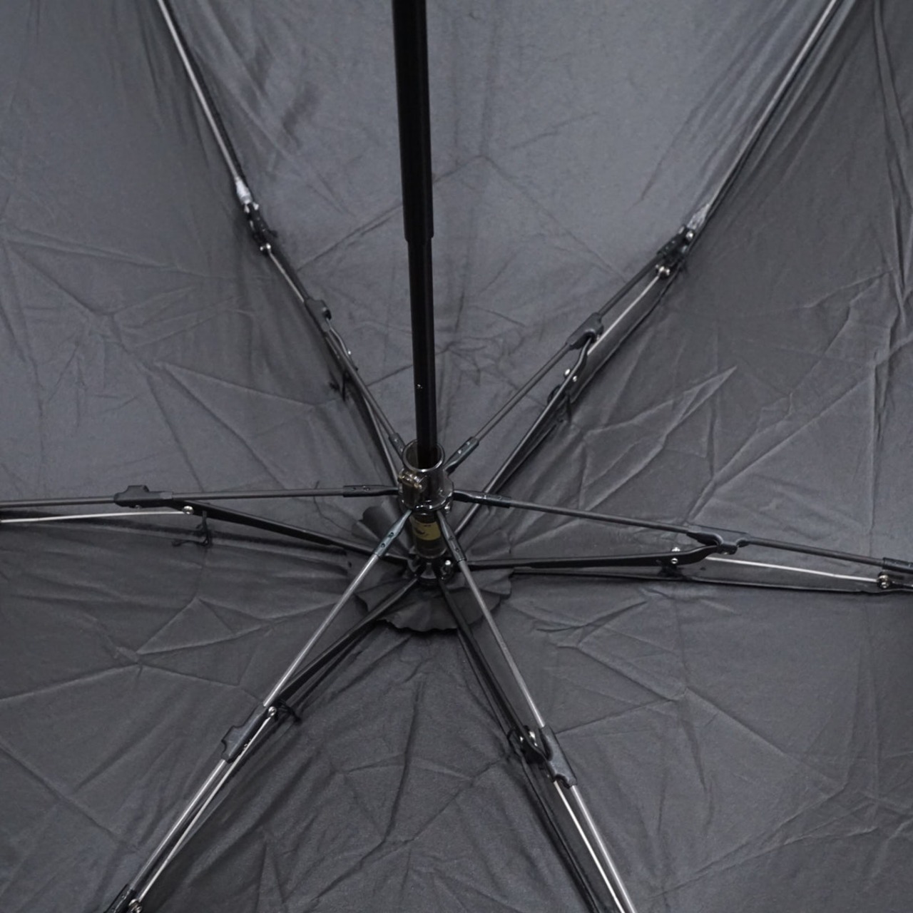無地のブラック色に、ブランドロゴを入れたシンプルなデザインの折りたたみパラソルです。